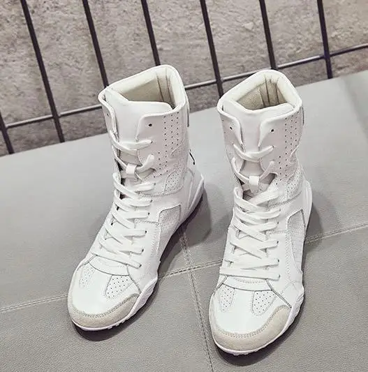 Кроссовки женские высокие, Повседневная дышащая обувь, плоская подошва, ботильоны, белые, весна-лето