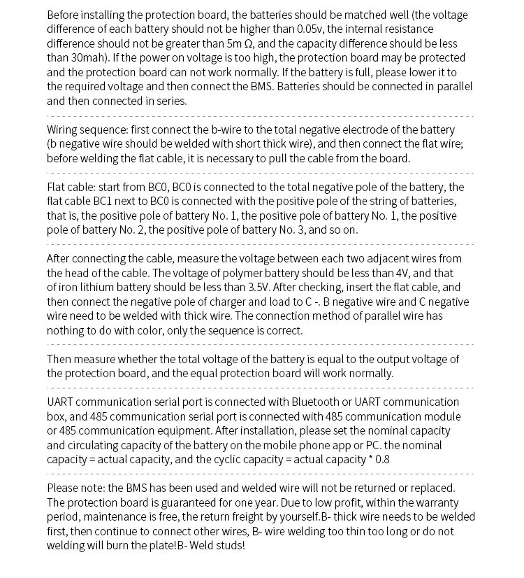 JBD-SP10S020-это умные BMS, специально разработанные Dongguan Jiabaida Electronic Technology Co., Ltd. для силовых батарей, электрических велосипедов, электрических мотоциклов и других продуктов; он может быть применена к 3,7 V Li-Ion 3,2 V lifepo4 батареи и т. Д.●Посылка-BMS * UART * Баланс проводов