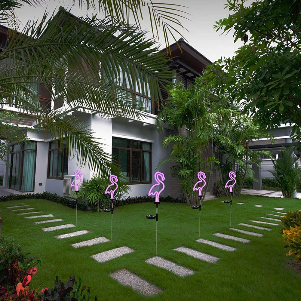 Уличные садовые фонари на солнечной батарее, водонепроницаемый светодиодный фонарь для газона с фламинго, декоративное освещение для ландшафтного пути