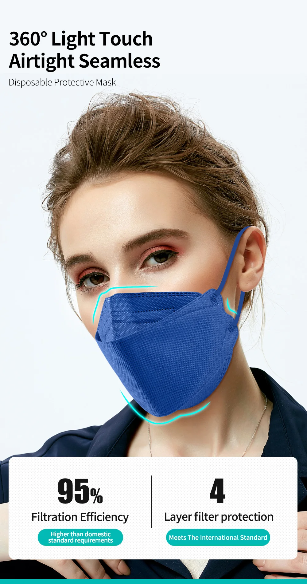 Маска FFP2 KN95 для взрослых, 4-слойная респираторная, N95, однораз...