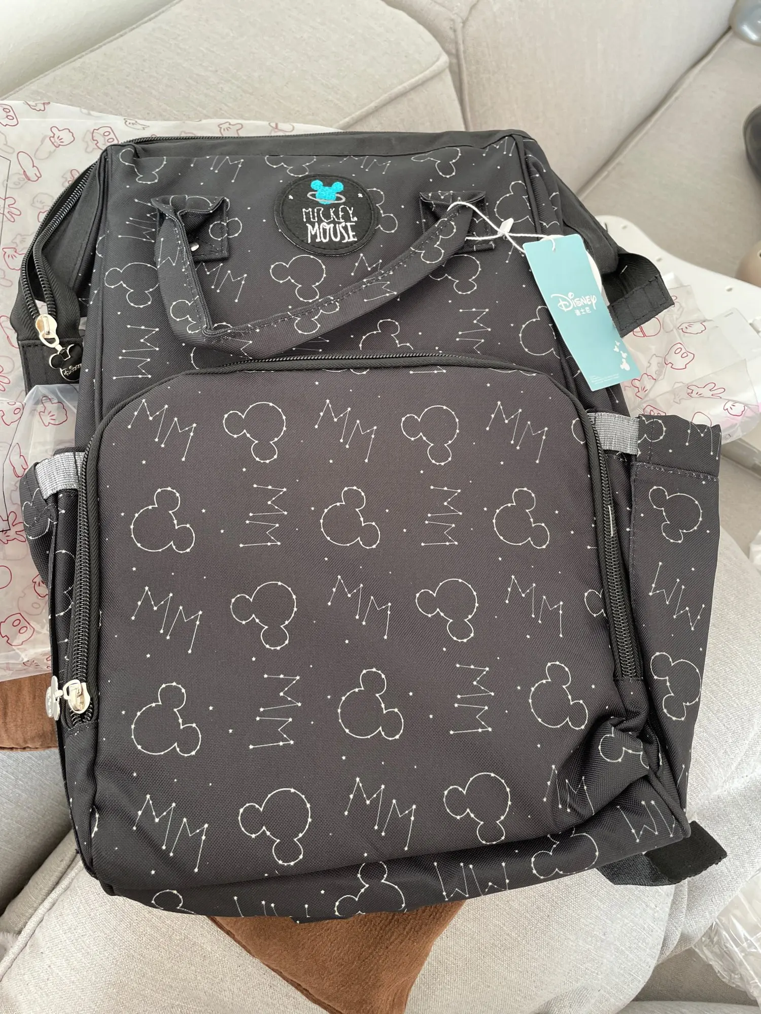 Рюкзак такой же, как в описании и на фотографиях. Это очень удобно, потому что у него много карманов, чтобы нести все, что вам нужно. Я ношу вещи моего ребенка, а также мои, просто ношу сумку, а не две. Он прибыл задолго до указанного продавцом. Единственным недостатком является то, что он пришел с дефектной вышивкой.
