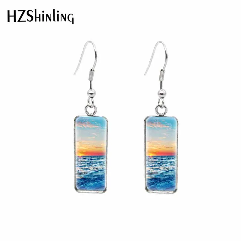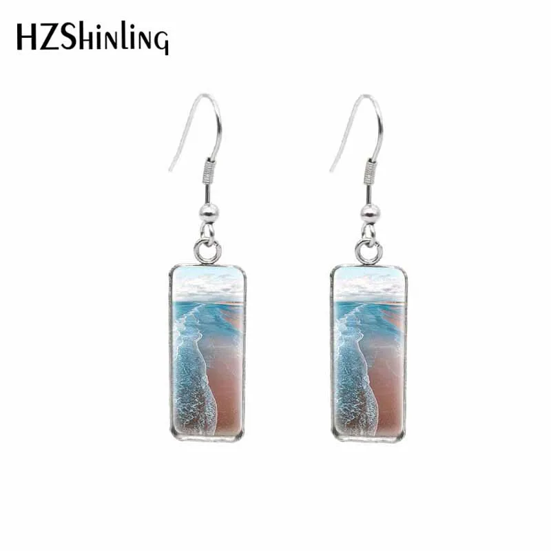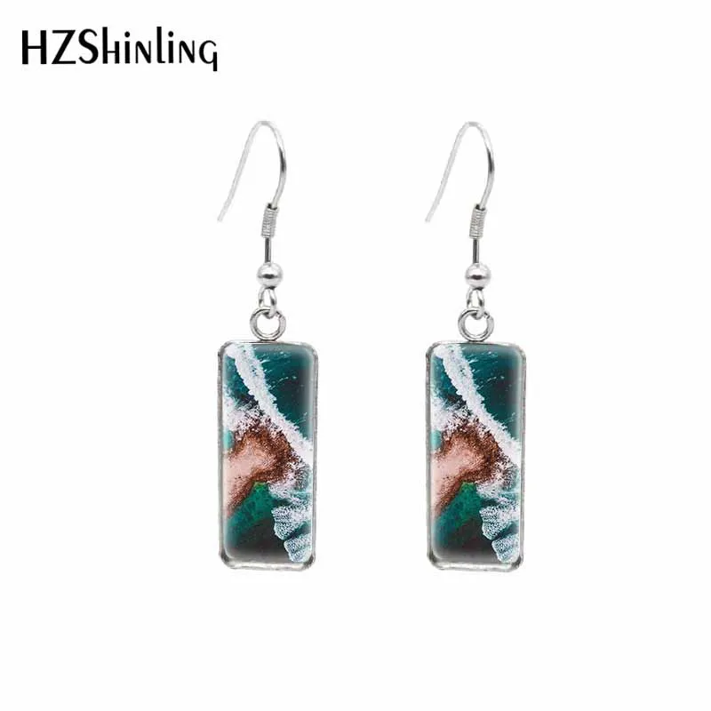 2021 летние прямоугольные серьги-Крючки для морского пляжа, висячие серьги-Кабошон из нержавеющей стали, ювелирные изделия для ушей