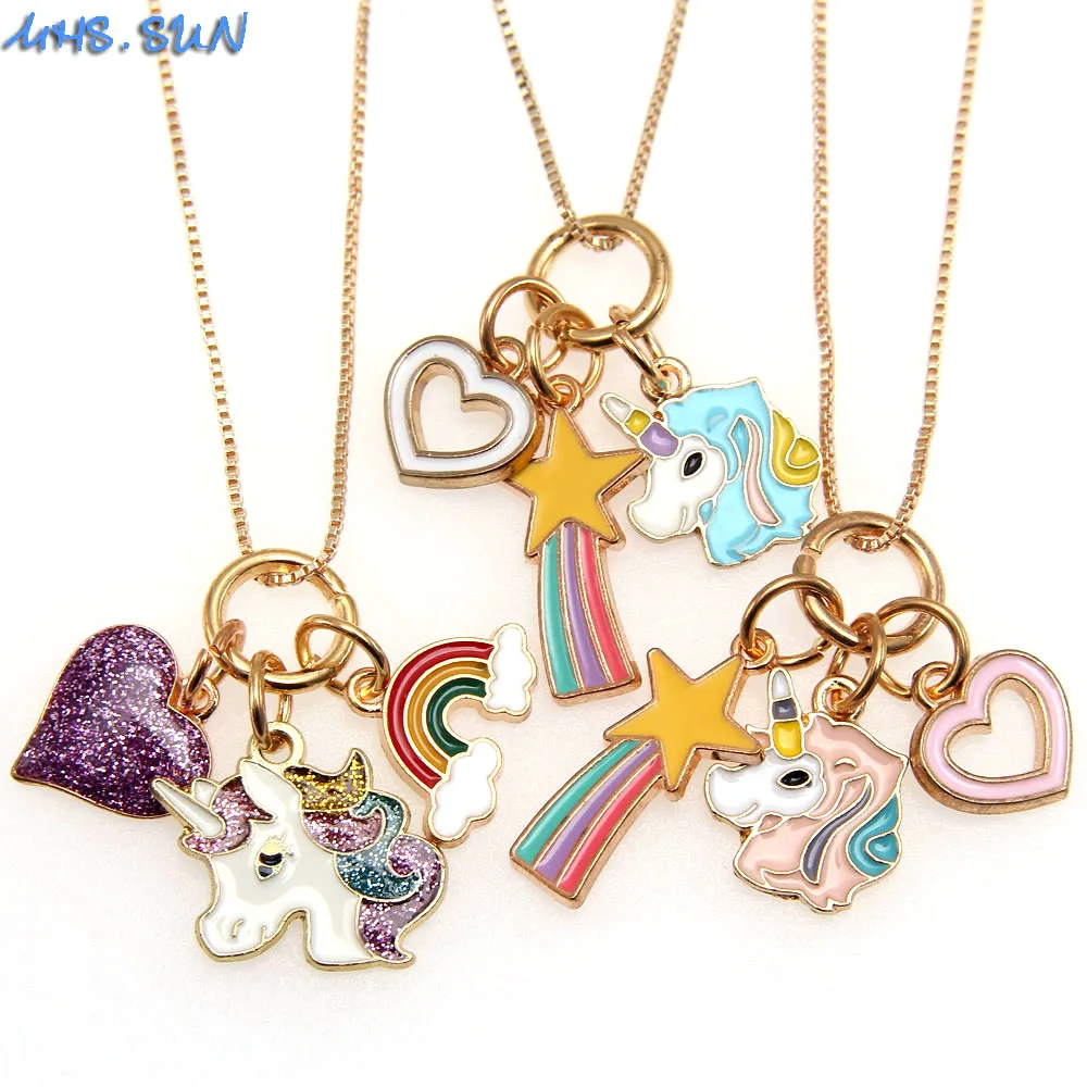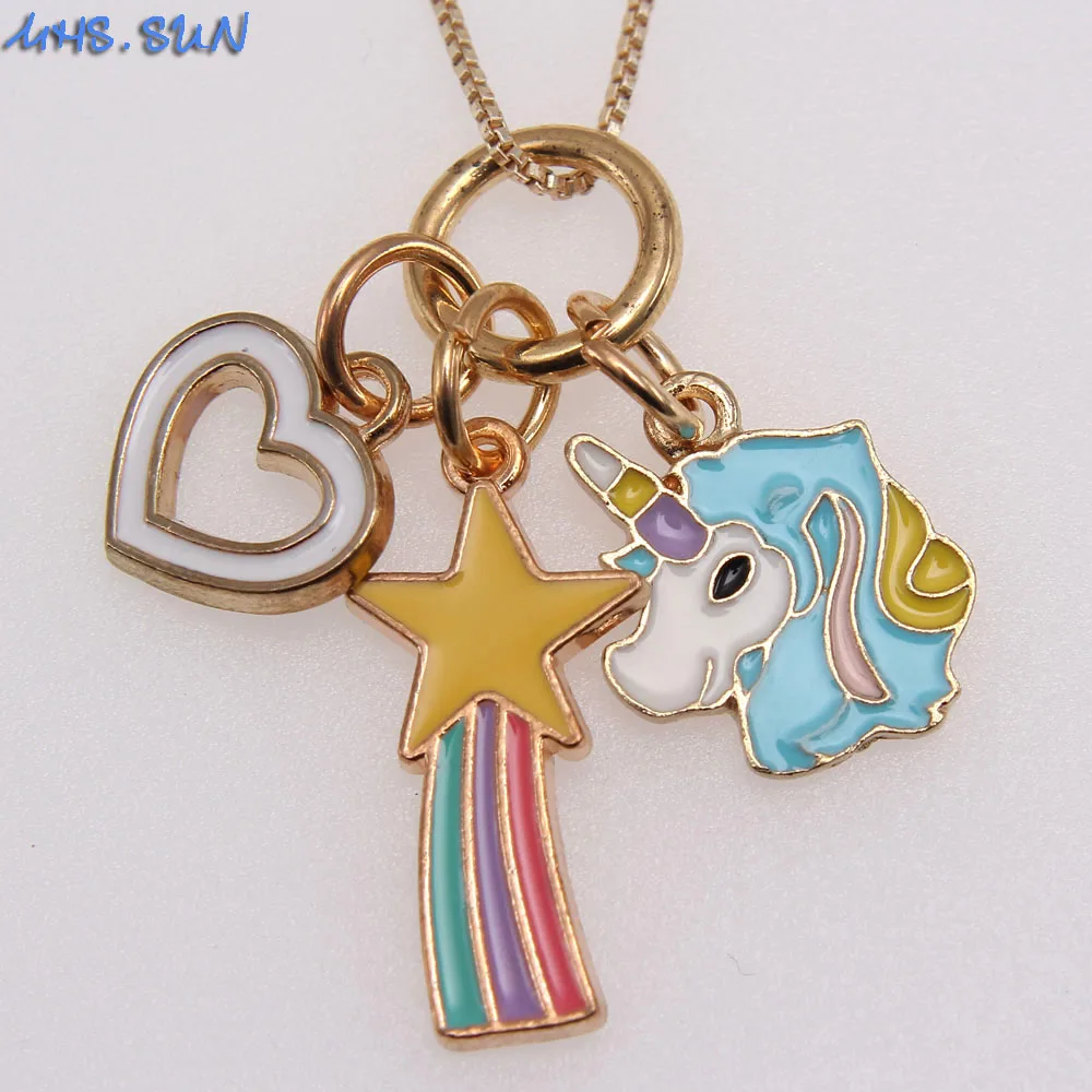 Служба. Солнце 1 шт. очарование ожерелье с подвеской в виде единорога для маленьких девочек DIY Золото Цвет цепи ожерелье мультфильм очаровательное ювелирное ожерелье для ребенка