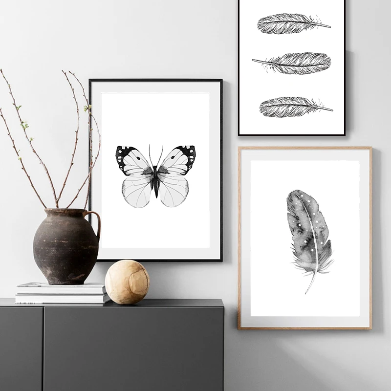 Картина на холсте с изображением одуванчиков и цветов, современная картина с изображением бабочек и перьев, черно-белого цвета, домашний декор для гостиной, настенный постер в скандинавском стиле