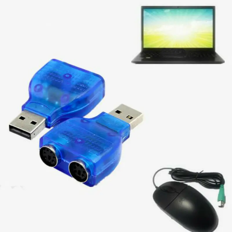 Адаптер PS2 (штекер)USB (гнездо), 1 шт., адаптер для мыши, клавиатуры, PS2, синий