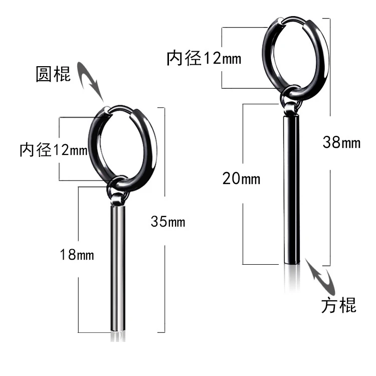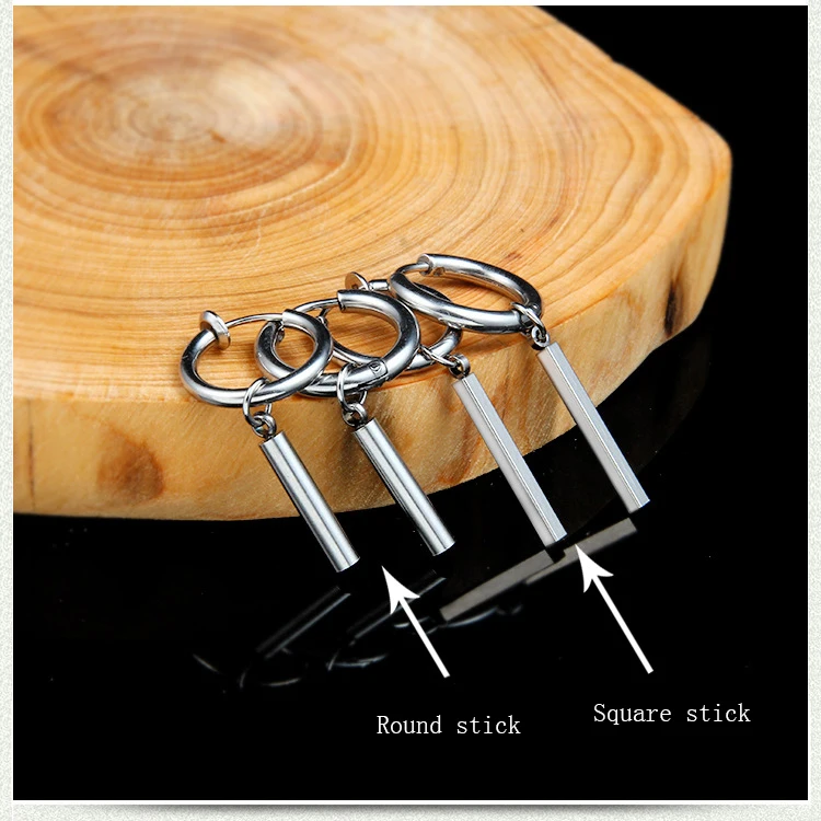 Серьги-капельки мужские из титановой стали, с отверстием для ушей или без, 2 шт.