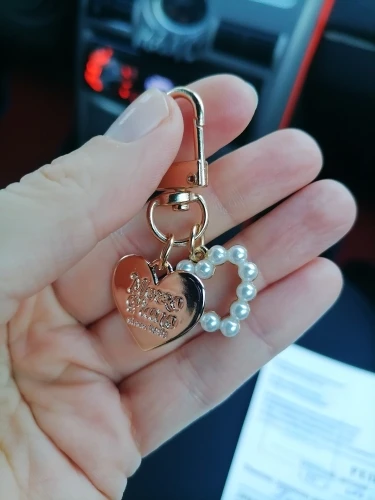 Брелок для ключей Женский, с жемчугом, в форме сердца, в Корейском стиле, брелок с кольцом для ключей