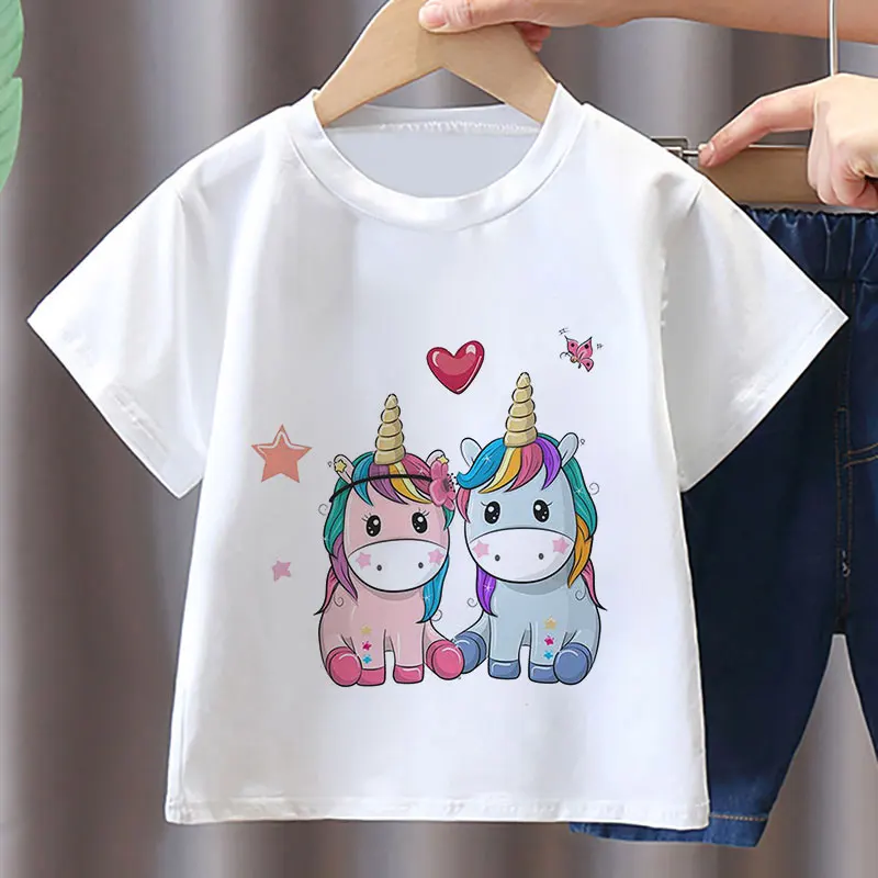 Футболка детская одежда для девочек белые летние детские топы унисе...