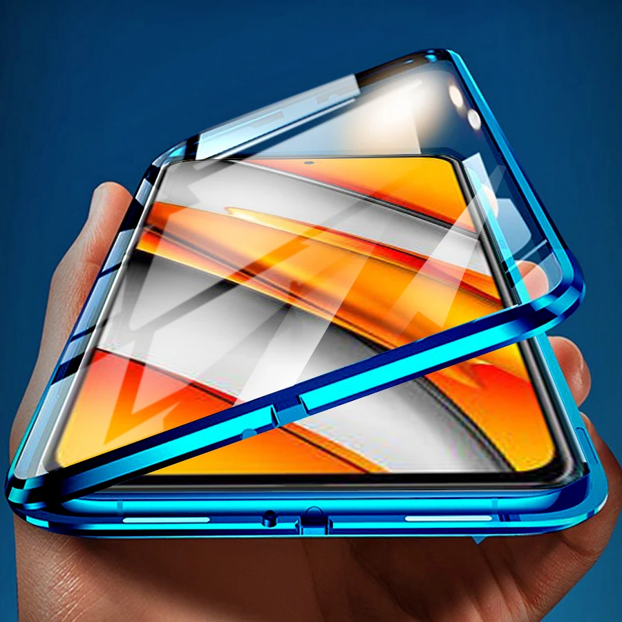 Для Xiomi Poco F3 чехол 360 ° полное покрытие Магнитный Флип-кейс двусторонний закаленное стекло чехол для Xiaomi Poco F3 F 3 Pocof3 6,67"