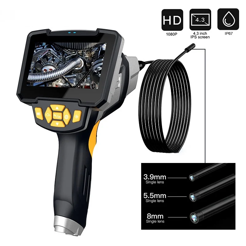 Камера Диаметр: 3,9 мм 5,5 мм 8 ммФокусное расстояние камеры: 4-5 мЭкран руководство по размерам: 4,3-дюймовый ЖК-дисплей ЭкранРазрешение: 1920x1080,1280x720,640x480Уровень водонепроницаемости: IP67Емкость аккумулятора: 2600 мАчРабочий час: 3-4 часа