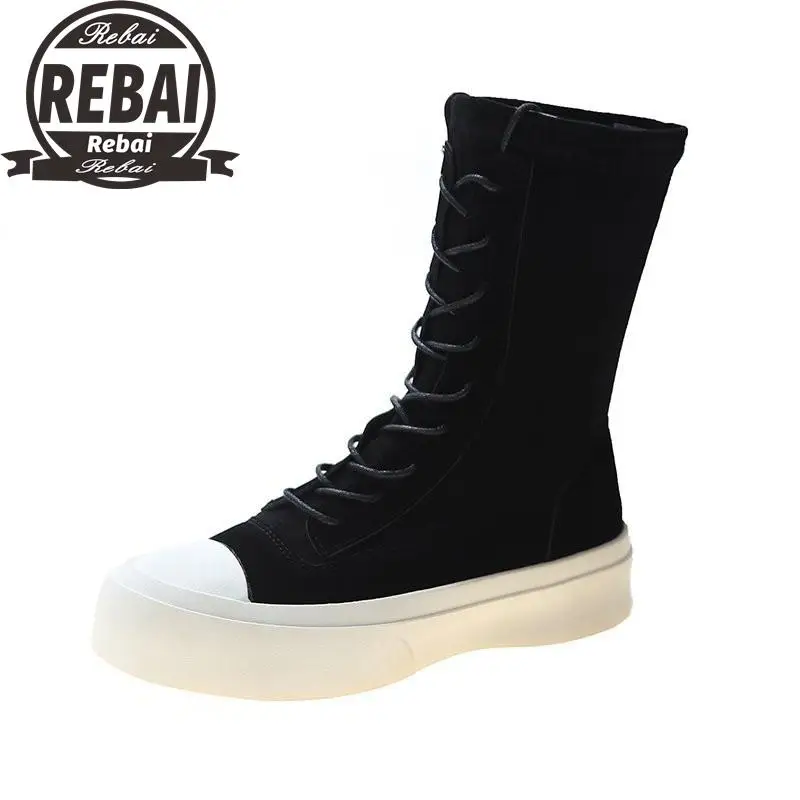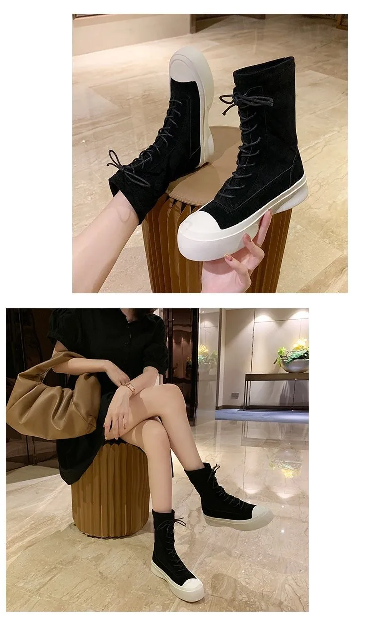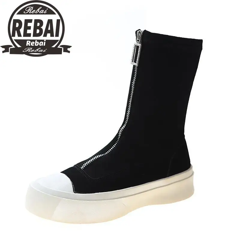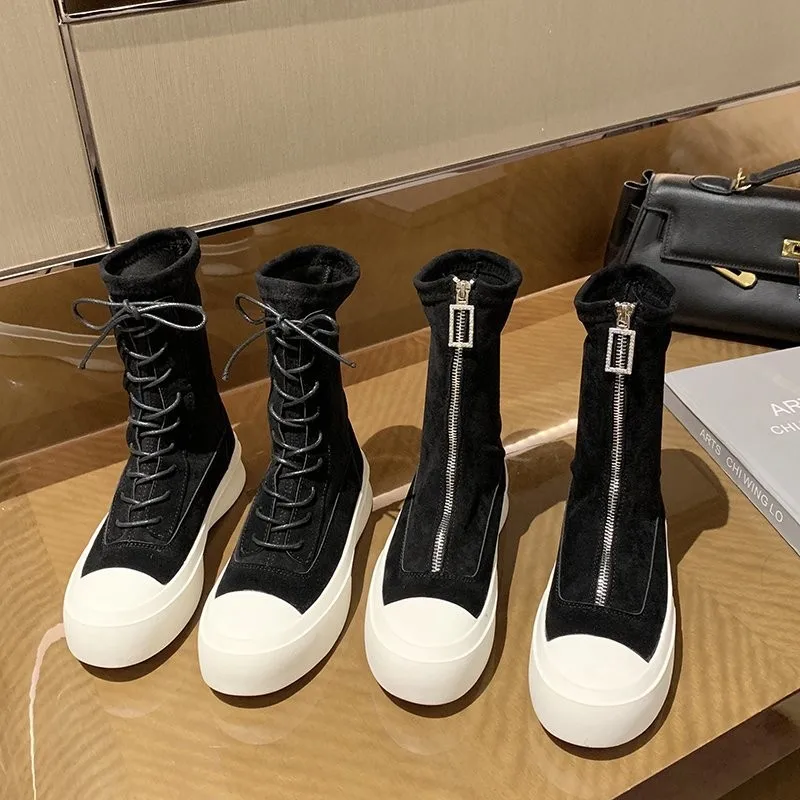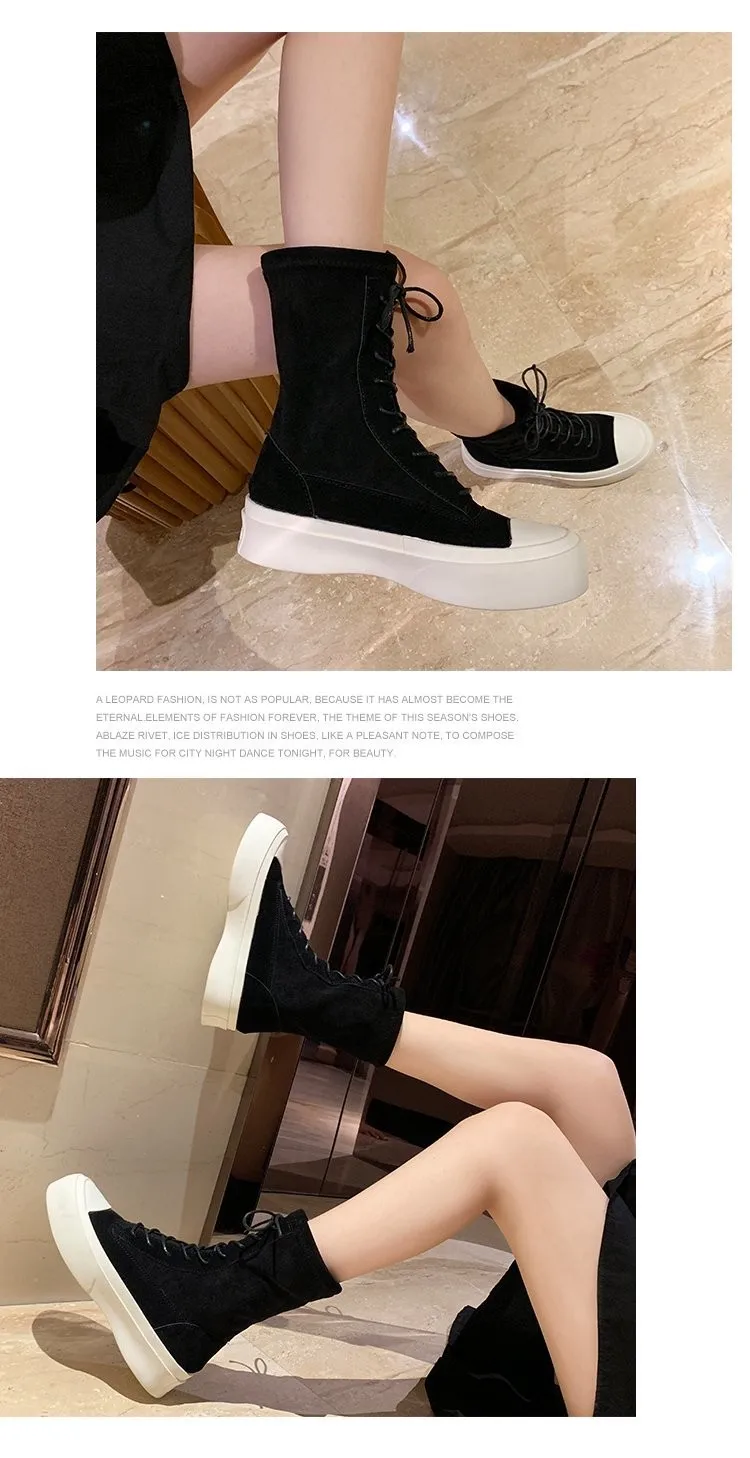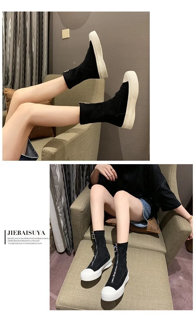 Женские ботинки без шнуровки на платформе в западном стиле трикотаж...