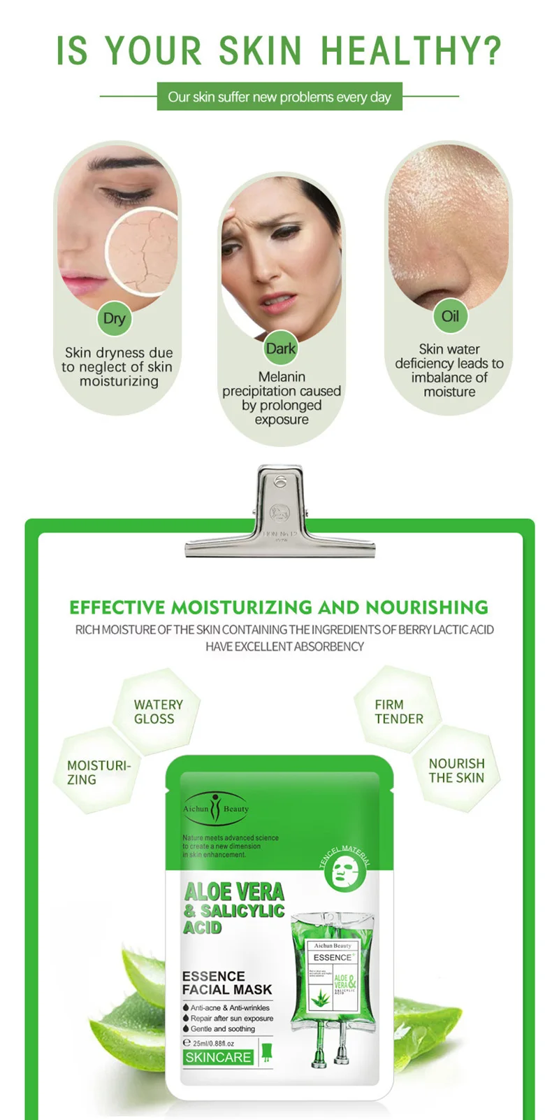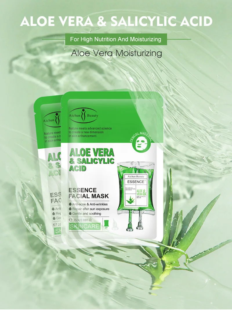 10 шт., маска для лица с экстрактом алоэ и салициловой кислоты