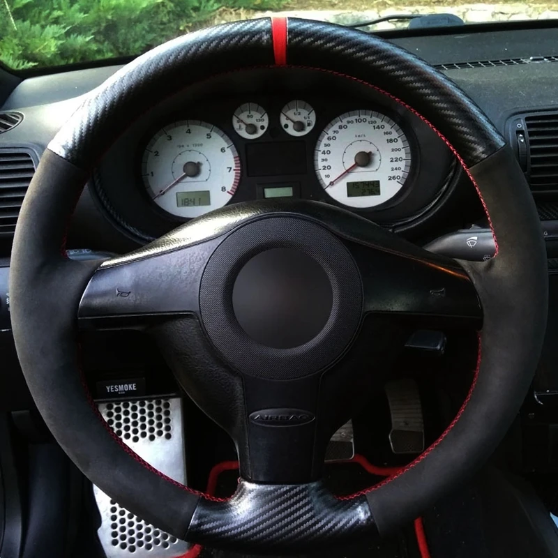 DIY ручной работы чехол рулевого колеса автомобиля черная замша кра...