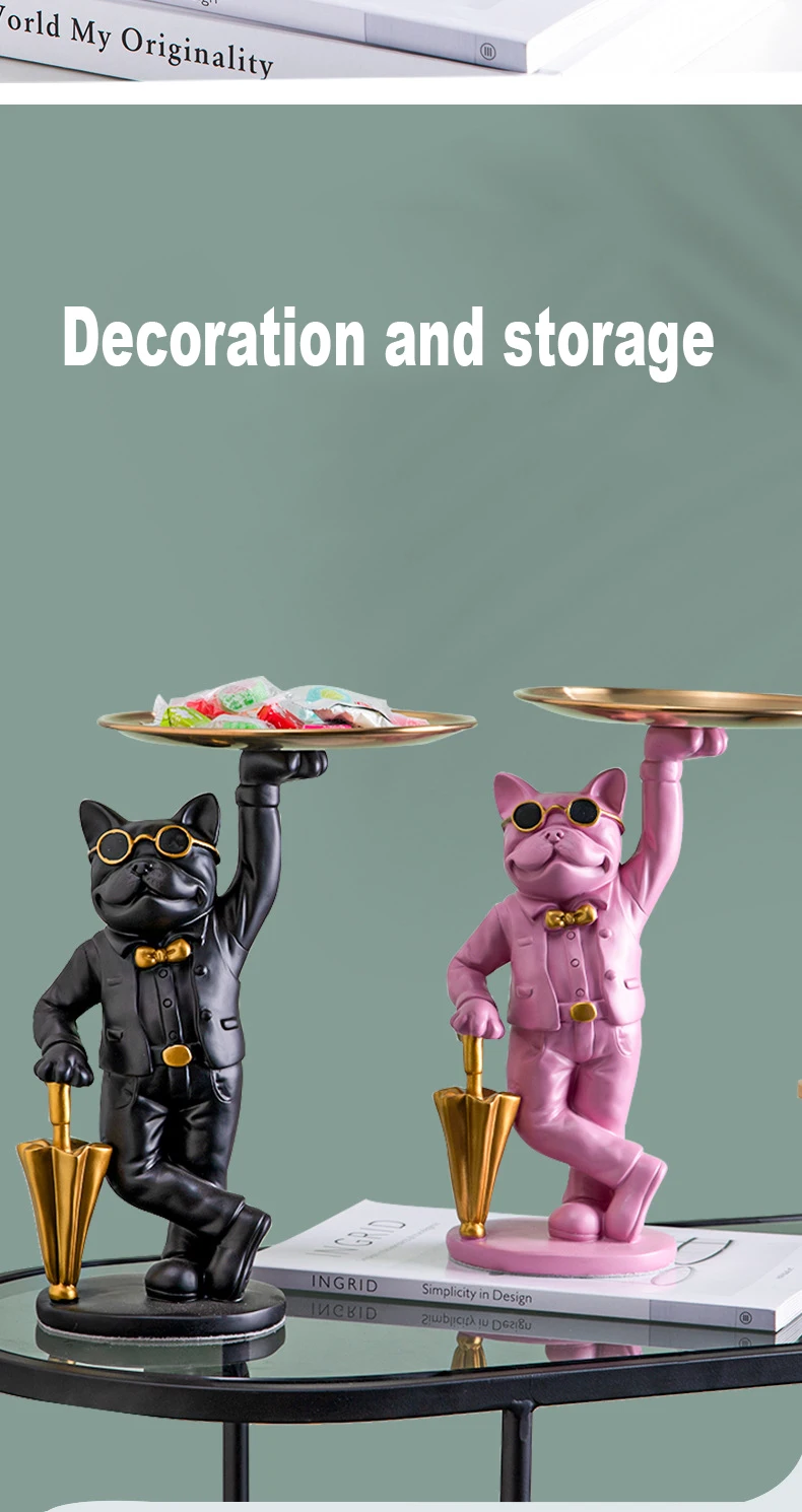 Крутая статуя бульдога, поднос для хранения из смолы, модная скульп...