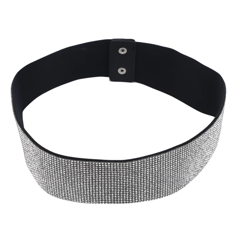 2020 Новый женский модный Блестящий Пояс-цепочка на талию Стразы Кристалл Пояс Металлическая Кнопка эластичная лента роскошный широкий ремень для вечеринки