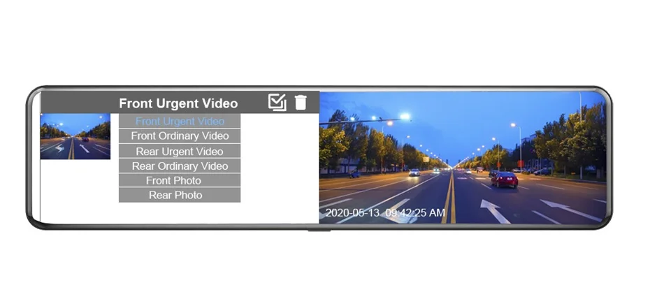 Воспроизведение видео на зеркале: переднее срочное видео, переднее обычное видео, заднее обычное видео, срочное видео сзади
