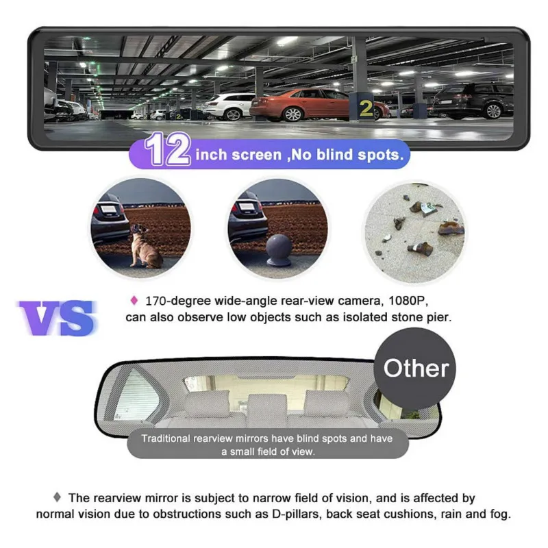 4K Rear View Mirror12 Inch Full Touch Screen Camera