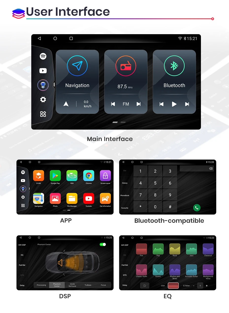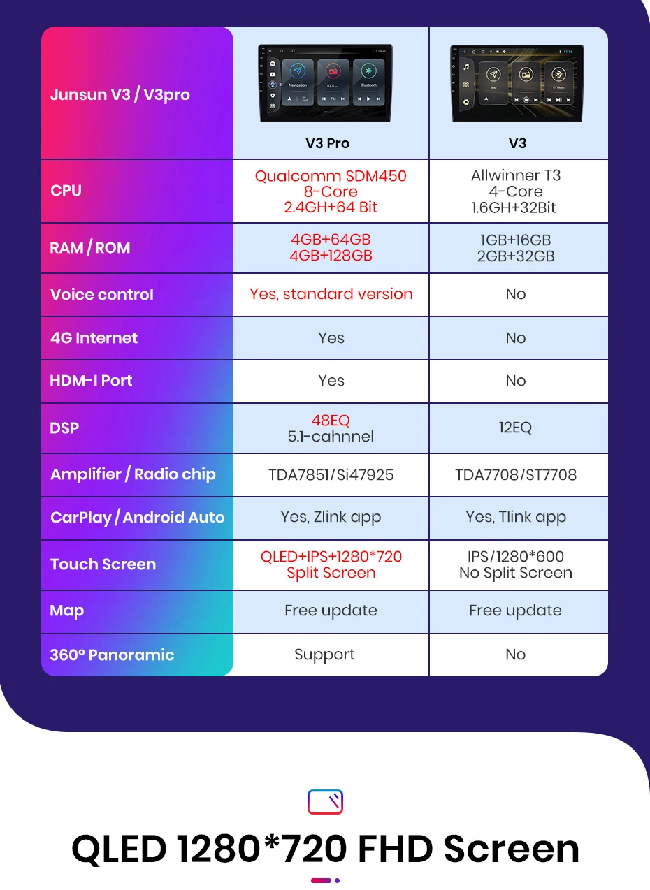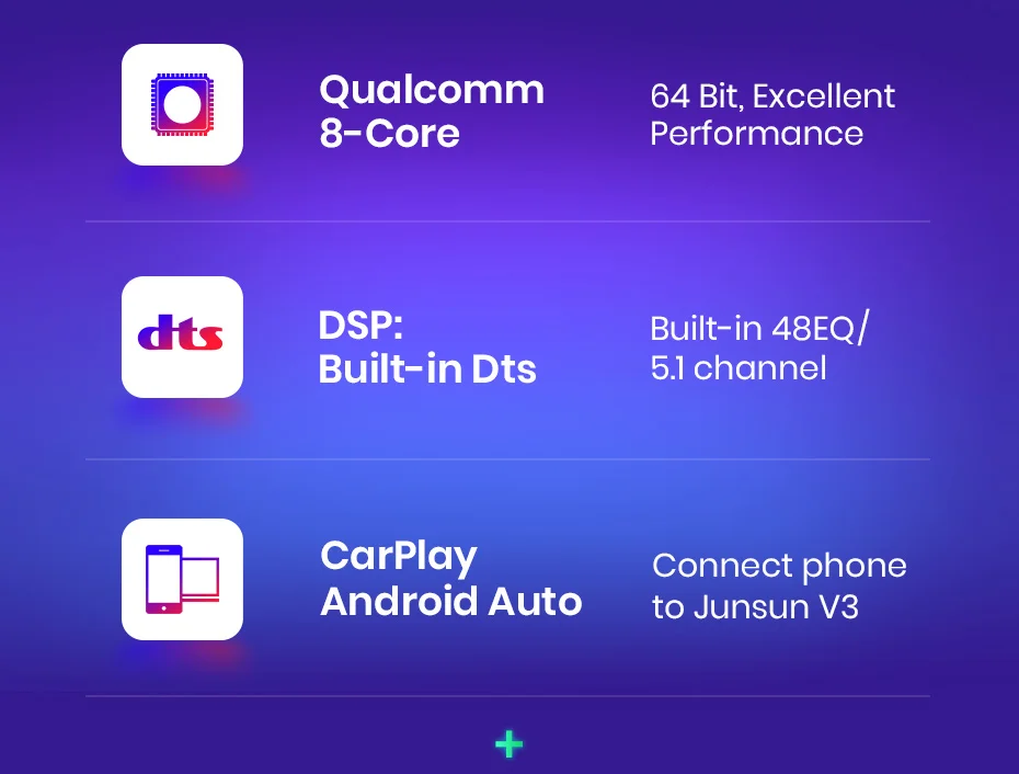> Многие другие автомобильные радиостанции имеют регулировку 16 эквалайзеров или 30 эквалайзеров. Junsun V3 Pro оснащенный DTS HiFi уровень цифровой звуковой лицензии;