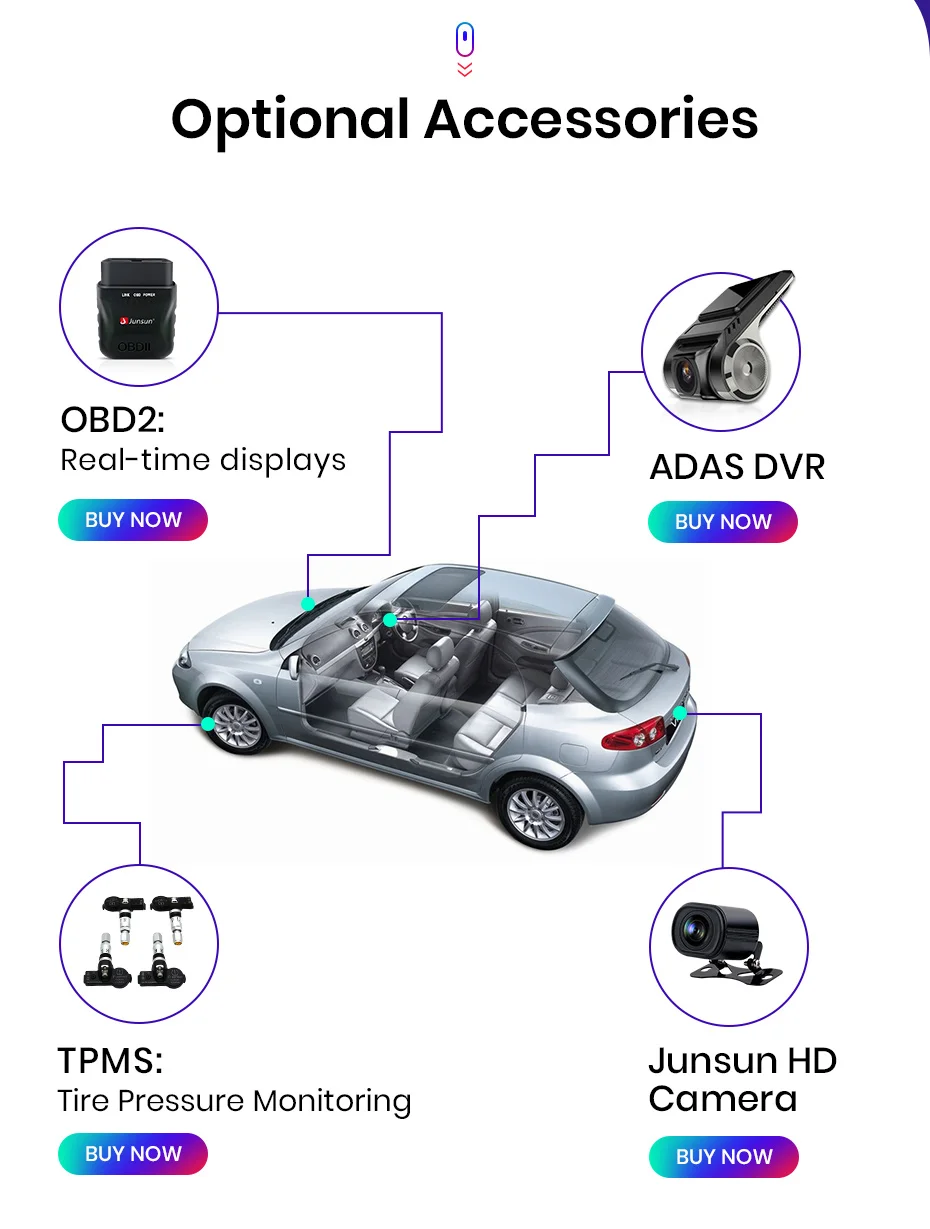 Built-in CarPlay & Android AutoJunsun has activated them for free
