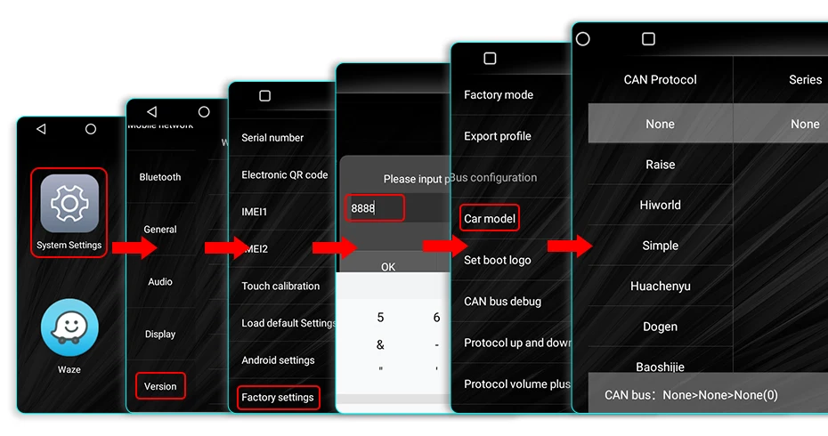 2) Если в посылка есть canbus, сначала Подключите canbus, затем обратитесь к изображению, чтобы установить модель автомобиля, затем выберите правильную информацию о автомобиле, перезагрузите, она будет работать автоматически; (V3 Следуйте первой картинке, V3Pro Следуйте второй картинке)