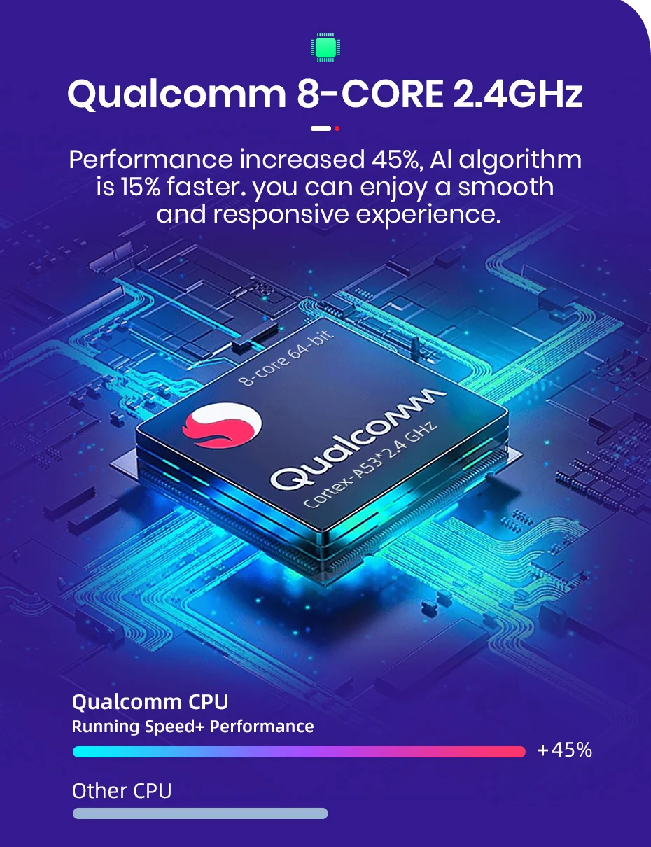 Newest Operating SystemQualcomm CPU, 8-core up to 2.4 GHz(Optional)