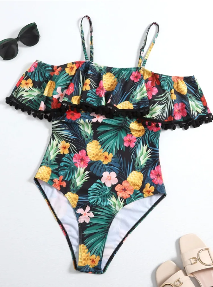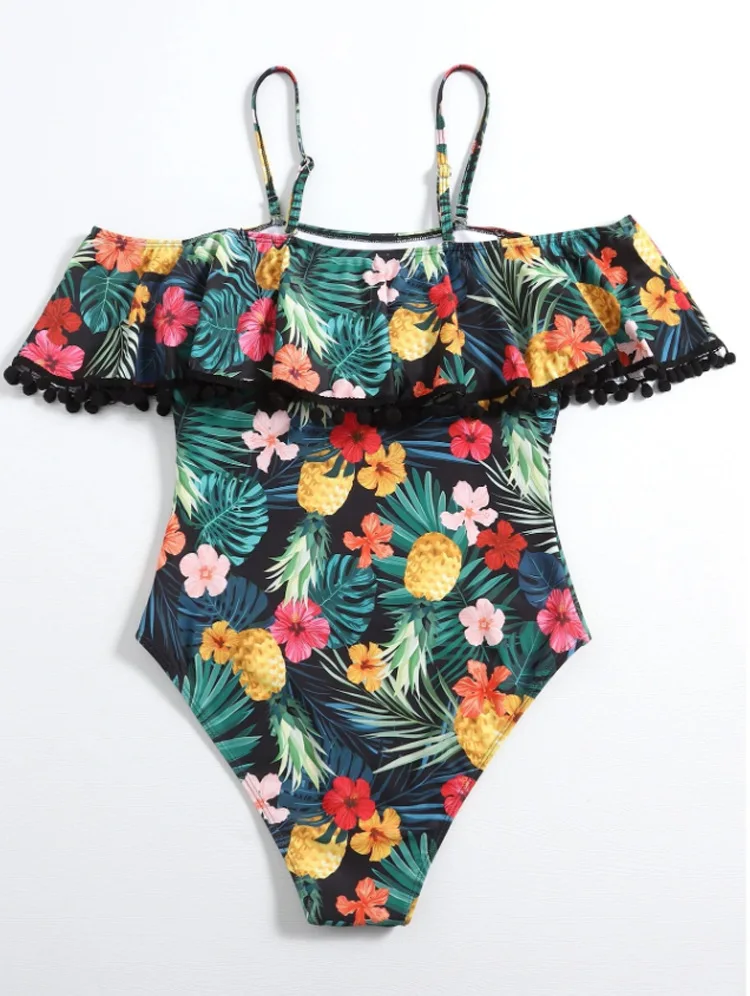 Новый сексуальный цветочный костюм-бикини с открытыми плечами, женский купальник, пляжная одежда, бикини