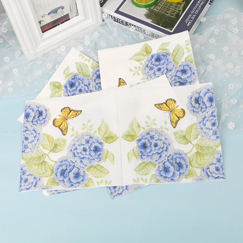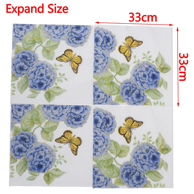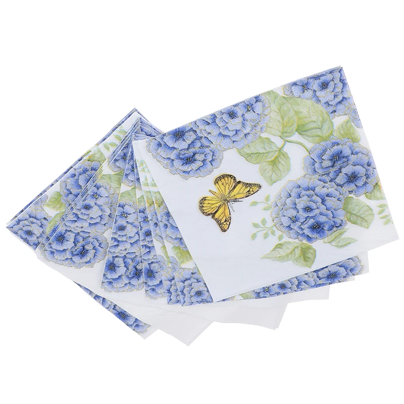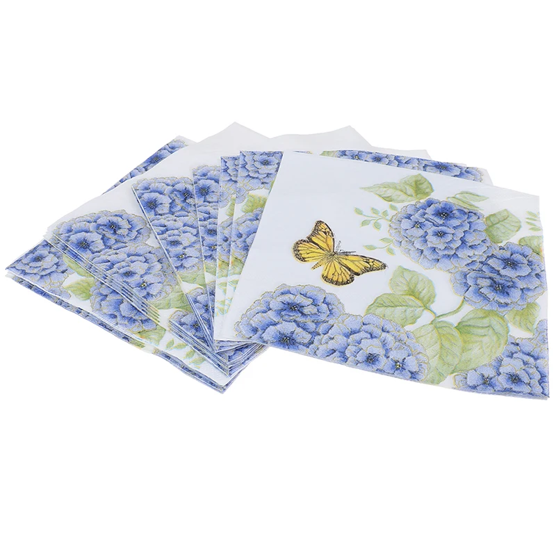 20 шт 33 см * 33 см дизайн с бабочками и цветами салфетки из ткани для вечеринок декупаж бумажные салфетки с рисунком свадьба, день рождения