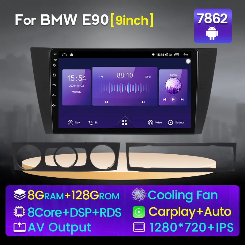 NaviFly 8 ГБ + 128 Гб 8 ядер IPS 1280*720 Carplay Android 11 Автомобильный GPS плеер для BMW 3-Series E90 E91 E92 E93 2005-2012 2013 радио BT