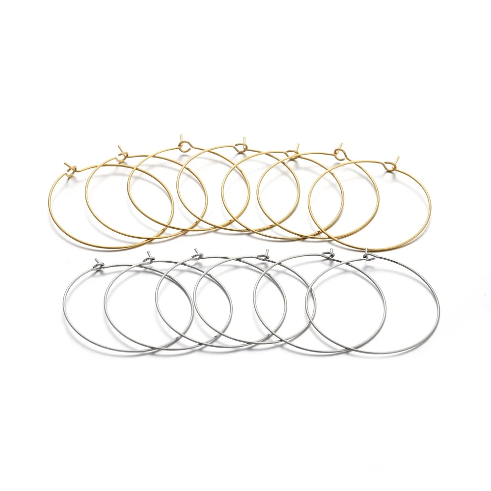 20 шт.лот, Золотые серьги из нержавеющей стали, большие круглые проволочные обручи, высококачественные серьги для самостоятельного изготовления ювелирных изделий
