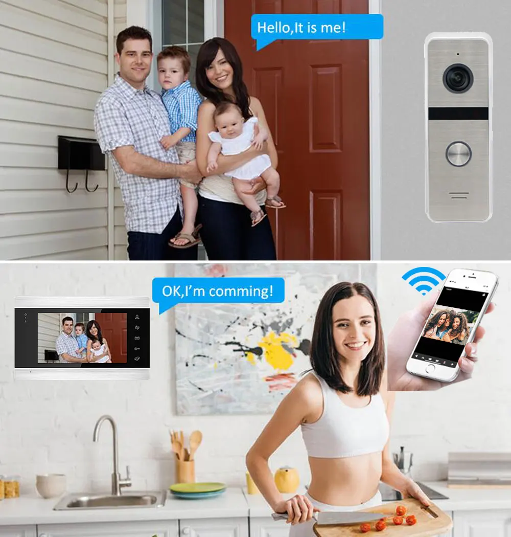 Tuya smart phone7 дюймов WiFi видео домофоны для дома 1/2 крытый монитор дверной звонок с ночным видением HD камера наружная система