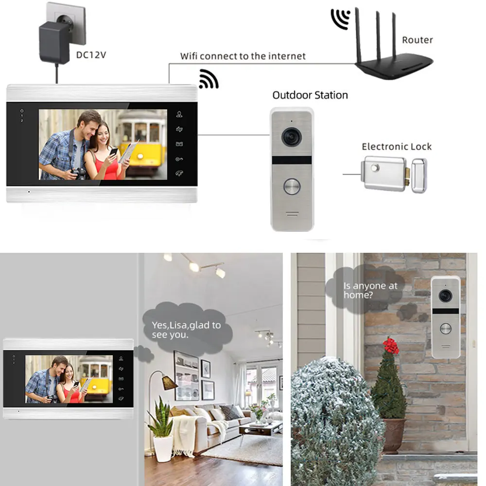 Умный видеодомофон Tuya с Wi-Fi 7 дюймов для дома, 12, внутренний монитор, дверной звонок с HD-камерой ночного видения, наружная система