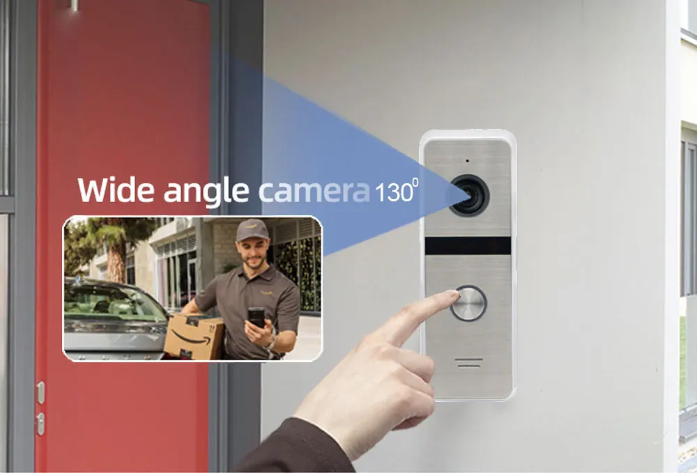 Это видеодомофон с функцией Wi-Fi, которая поддерживает работу с мобильными телефонами, когда Посетитель нажимает на дверной звонок, ваш телефон получит уведомление приложения, это означает, что вы можете использовать приложение для открытия двери, разговаривайте с посетителями, смотрите видео и так далее, когда Посетитель нажимает дверной звонок, ваш телефон получит уведомление приложения