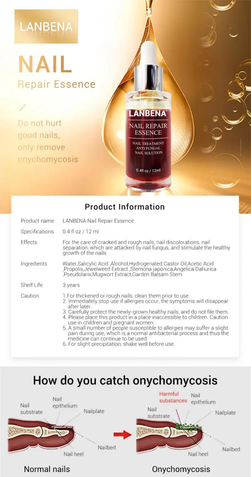 Сыворотка для восстановления ногтей от грибков LANBENA 12 г, средство для лечения грибка ногтей на ногах, гель для удаления грибка на ногтях, эссенция паронихии и онихомикоза антиинфекционная