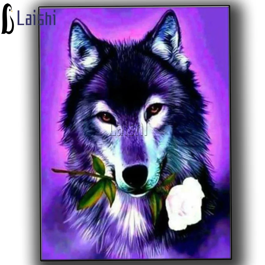 Камни в форме ромба и круглый дрель Алмазная вышивка возникла Роза в волк с открытым носком Алмазная Живопись Вышивка крестом, мозаичный Декор подарок