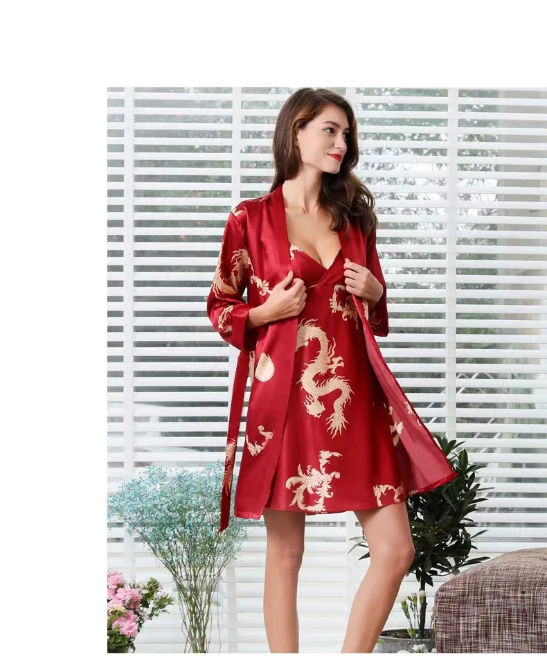 Халат женский атласный с драконом, роскошная дизайнерская шелковая ...