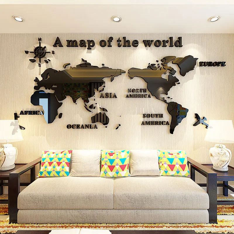 Карта мира акриловая 3D однотонная Хрустальная стена для спальни с живыми фотонаклейками офисное украшение диван роспись большие обои