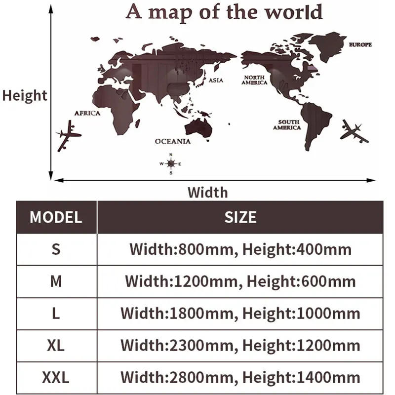 3D акриловая Настенная Наклейка с картой мира, Зеркальная Наклейка ...