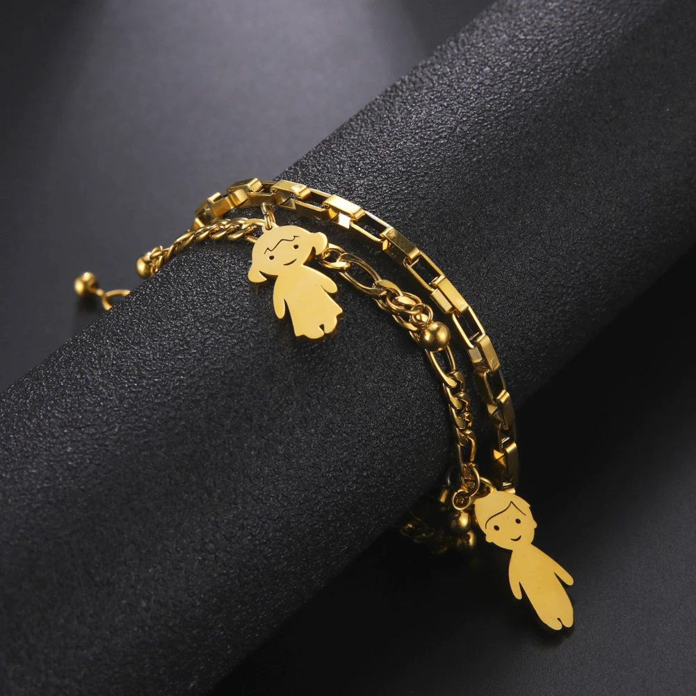 Браслеты Lucktune из нержавеющей стали для семьи, мальчика, девочки, ребенка, роскошный подарок, Двойная Цепочка, браслет для женщин, Изящные Ювелирные изделия