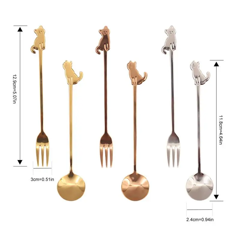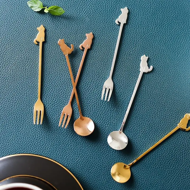 Настольная посуда из нержавеющей стали Креативный дизайн кошки десертная кофейная ложка Вилка