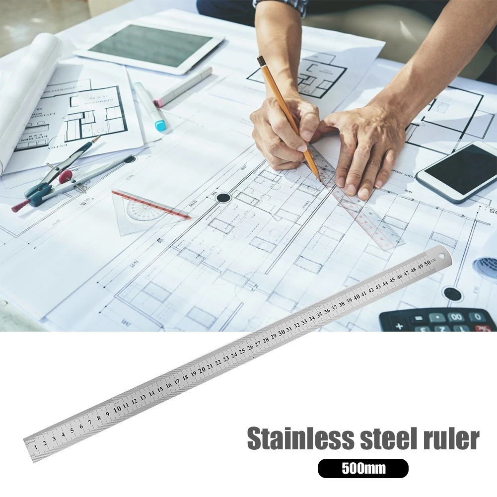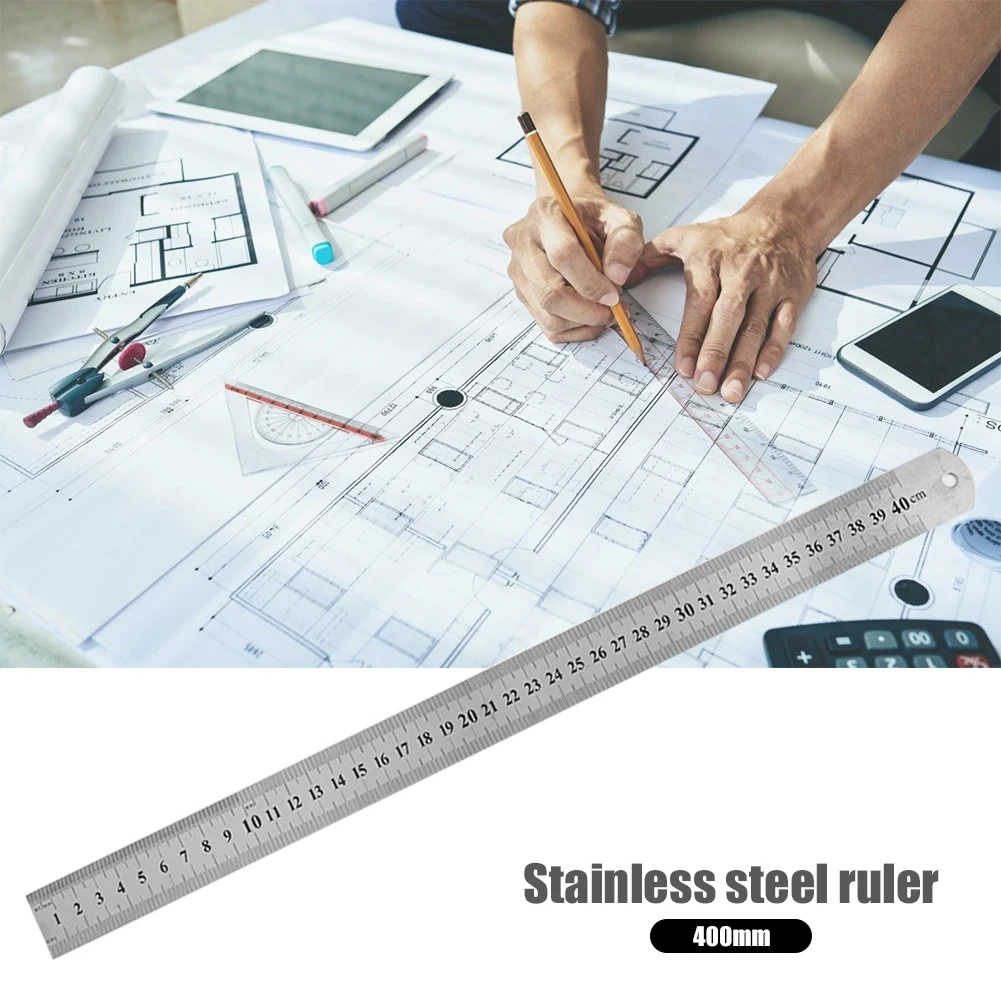 Двусторонняя прямая Линейка из нержавеющей стали, металлическая шкала, точный измерительный ручной инструмент, канцелярские принадлежности, чертежный аксессуар, школа