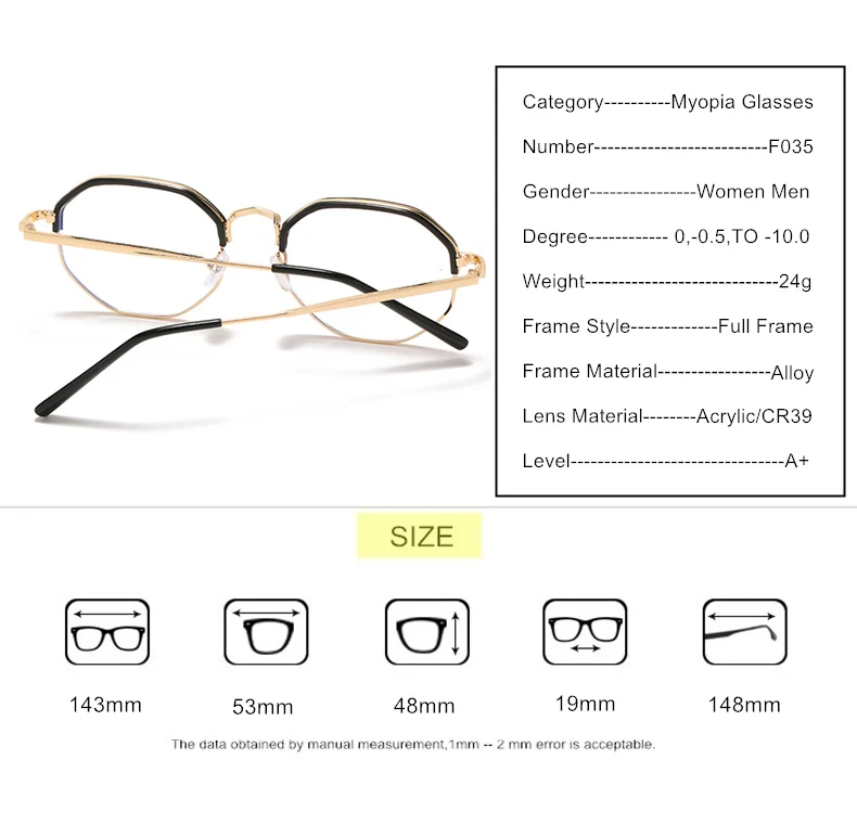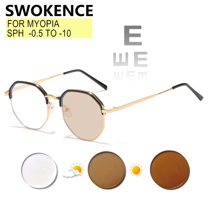 Фотохромная оправа для женщин, мужчин, для защиты от синего света, хамелеон Рецептурные очки для близоруких, F035, 0,5-очки для близоруких, to -10