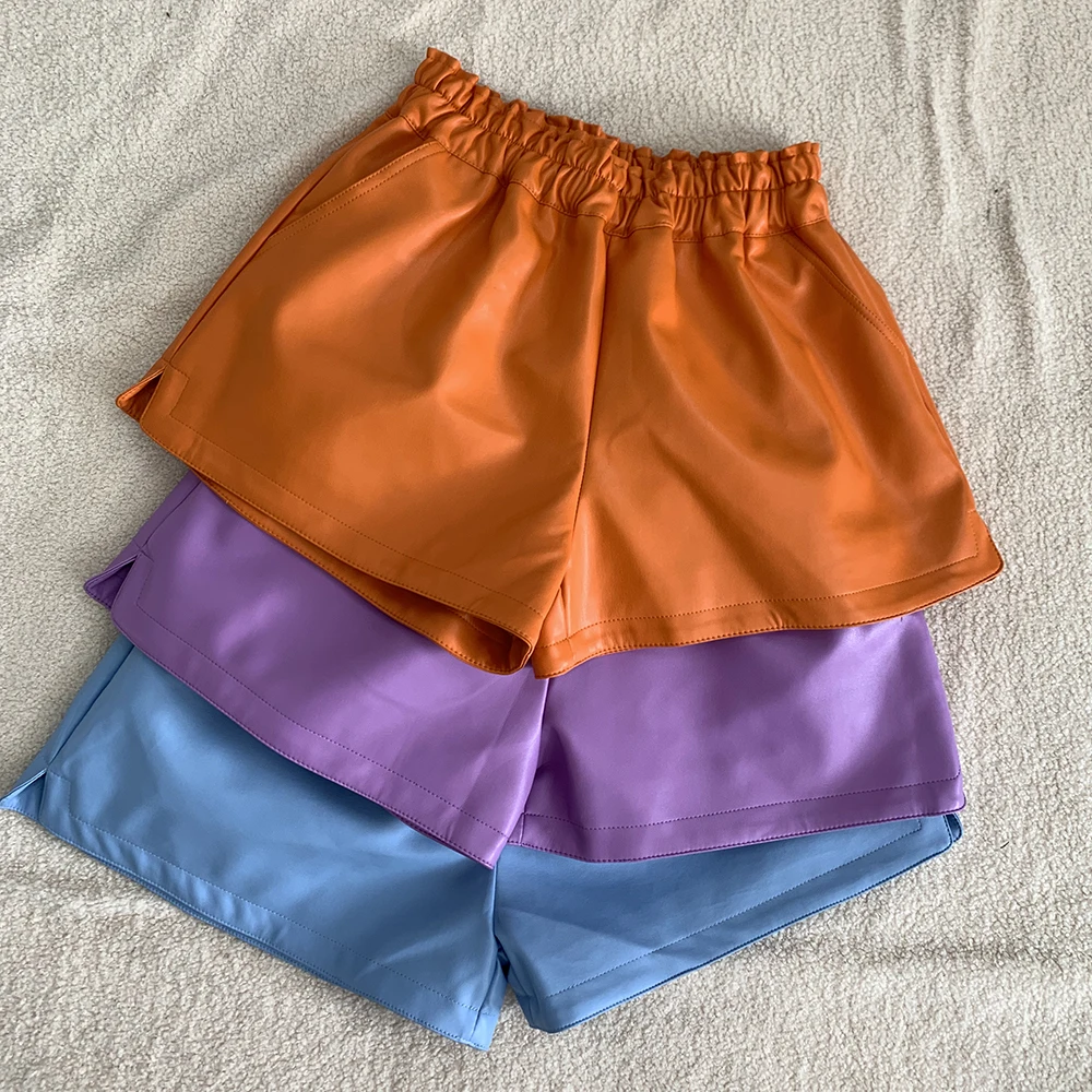 Женские байкерские шорты Shintimes, Осенние широкие шорты из искусственной кожи с эластичным поясом и высокой талией, винтажная Женская одежда с карманами, 2022