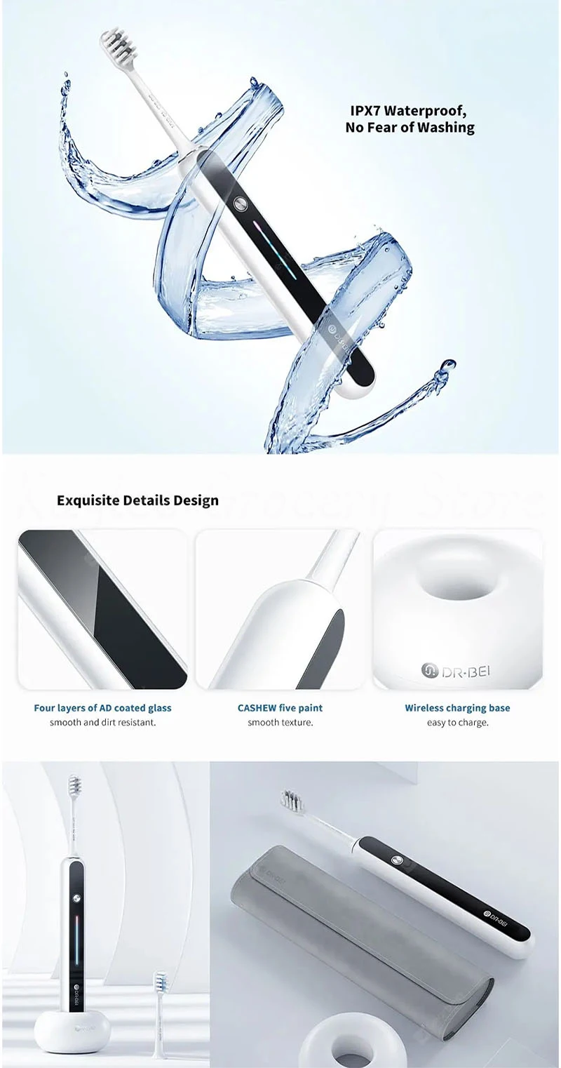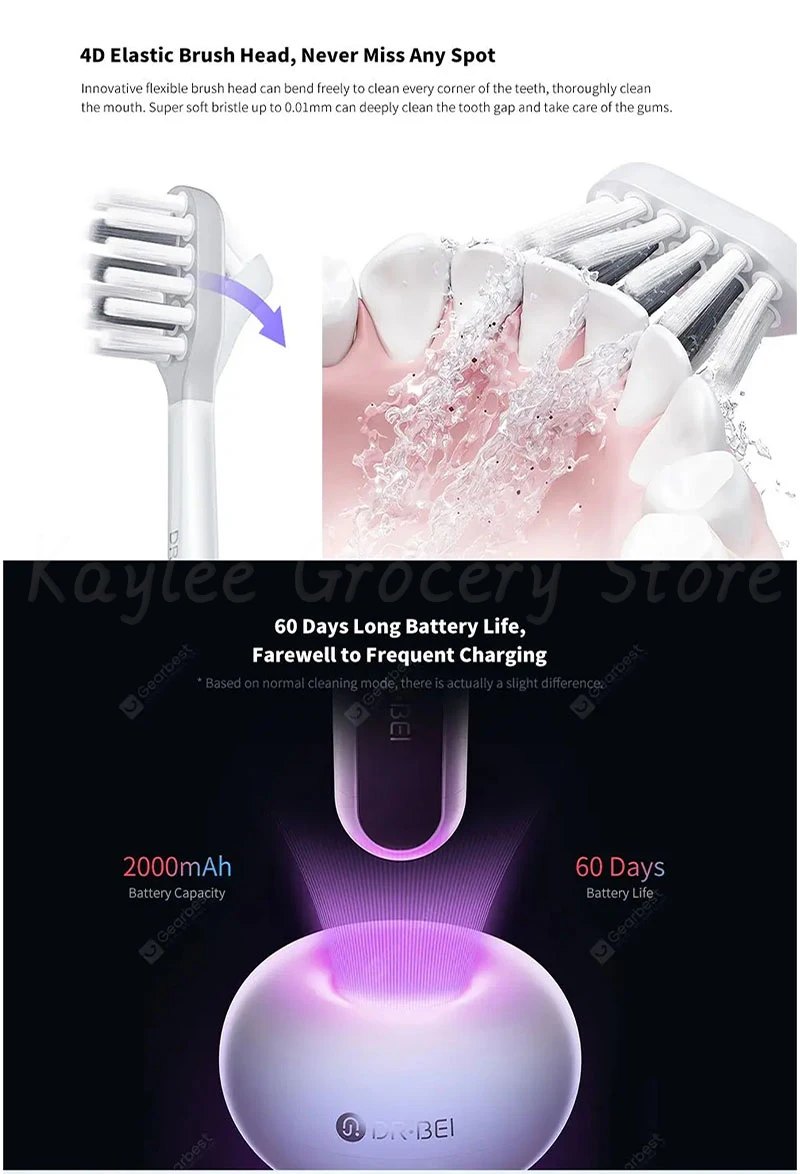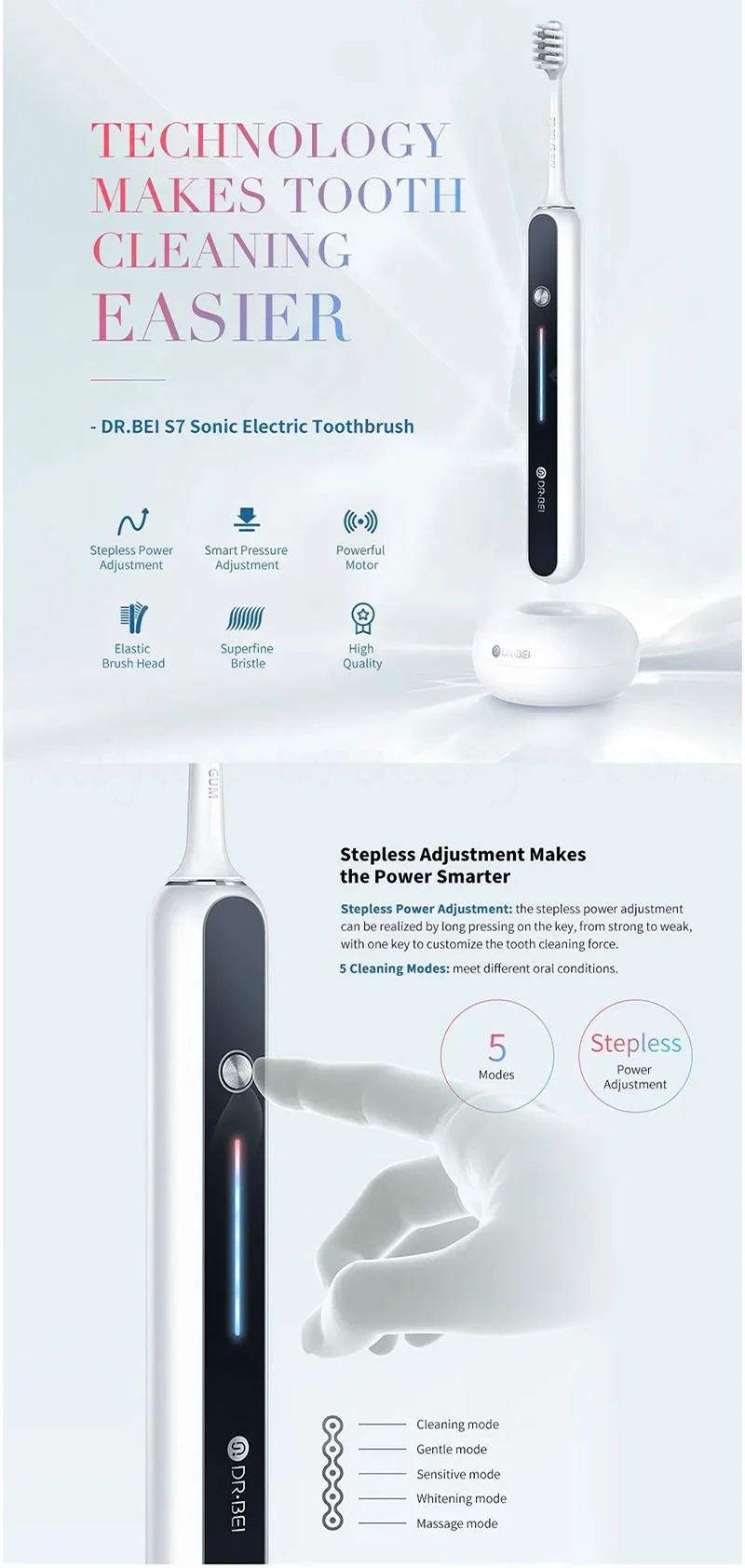 Новая звуковая перезаряжаемая электрическая зубная щетка Dr. Bei S7 XiaoMi для взрослых с мягкой щетиной отбеливающая зубная щетка-белый USB-порт