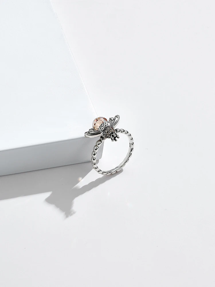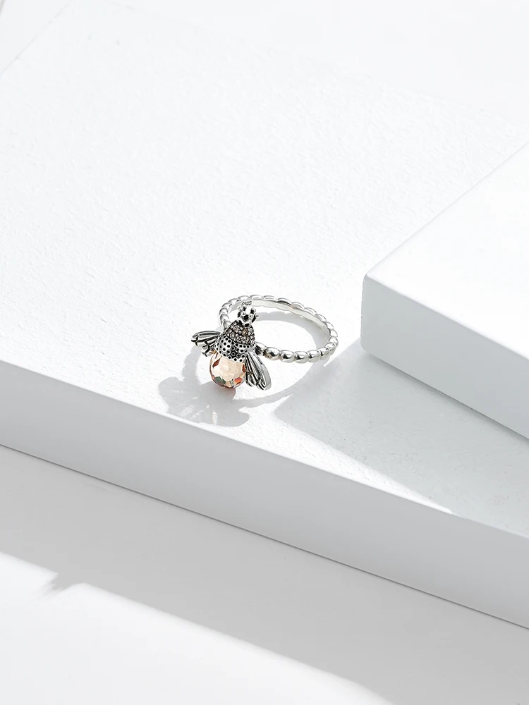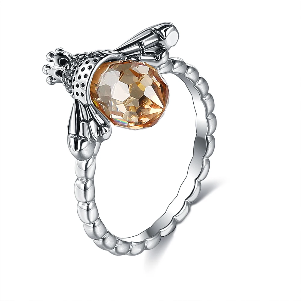 Кольцо SILVERHOO из стерлингового серебра 925 пробы с австрийским кристаллом, креативный дизайн, милое кольцо с Пчелой и животным для женщин, модные ювелирные украшения, лучшее