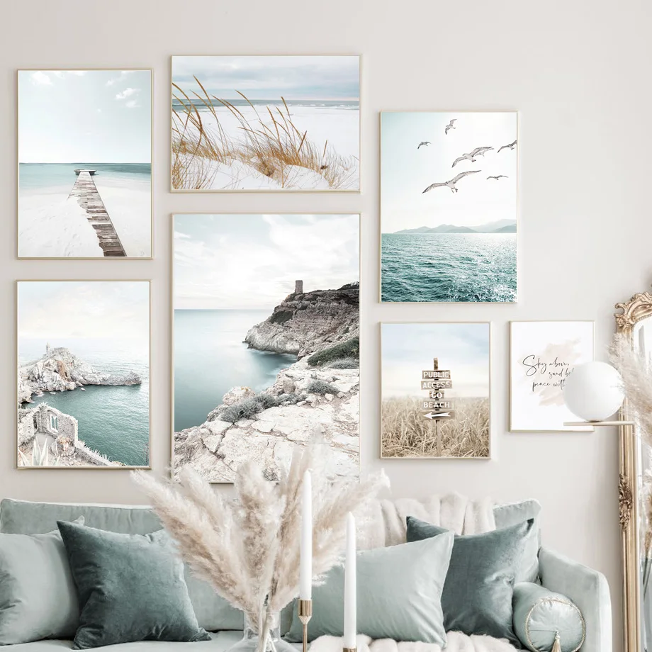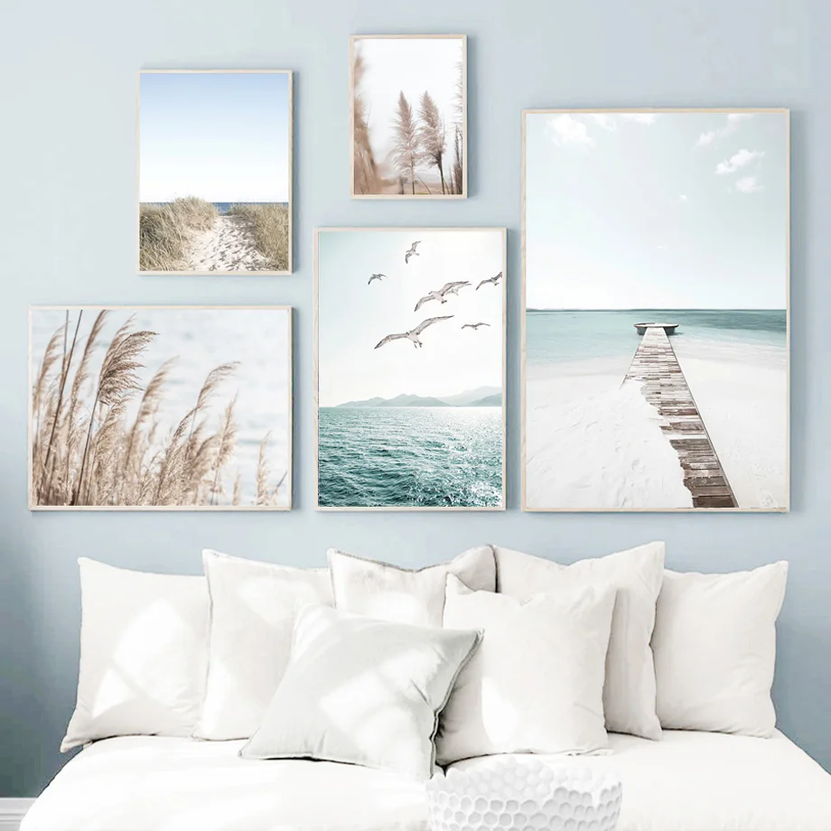 Трава, геркон, мост морского дна, раковина, натуральное настенное искусство, холст, живопись, скандинавские плакаты и принты, настенные картины для декора гостиной