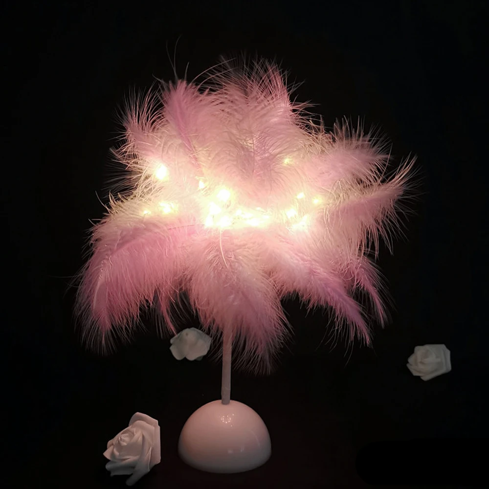 Настольная лампа с перьями, креативный ночник с дистанционным управлением, питанием от USBбатареек AA, абажур с древесными перьями, ночник для дня рождения