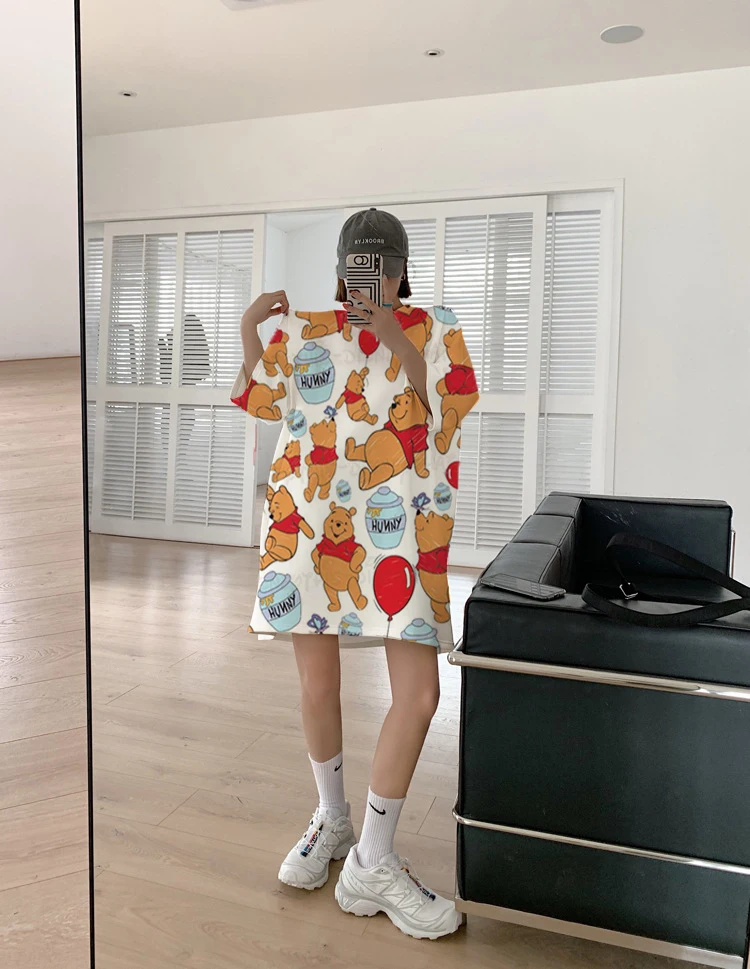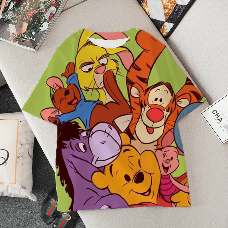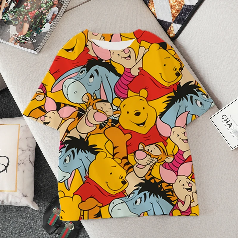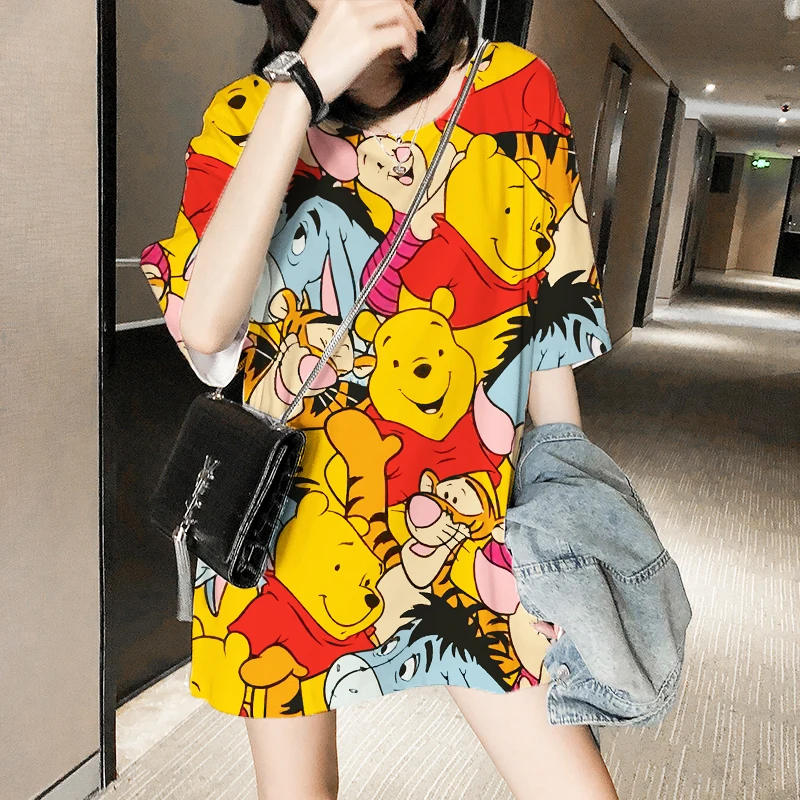 Женские футболки с 3d-изображением героев Диснея, модные Винни оверсайз с изображением пуха, медведя ольччан, милые белые топы с изображением героев мультфильмов, укороченные подростковые футболки для девочек, семейный образ