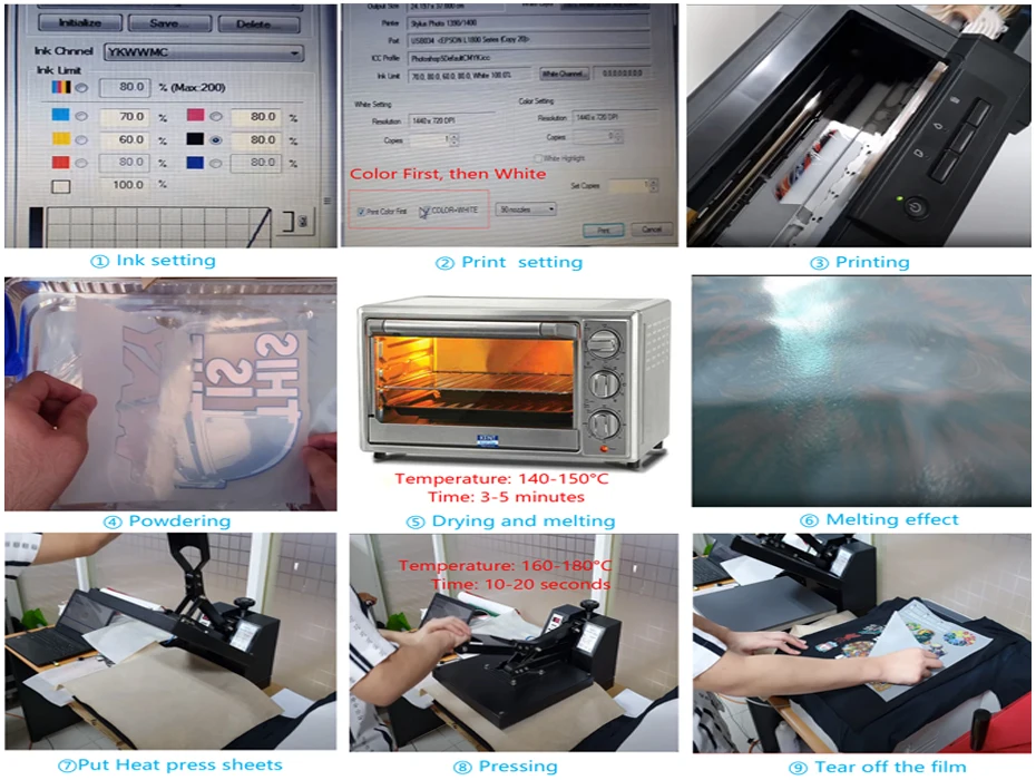 3. Белые чернила и цветные чернила печатаются на термопленке с высокой плотностью цвета, без отбеливания и ярких цветов;