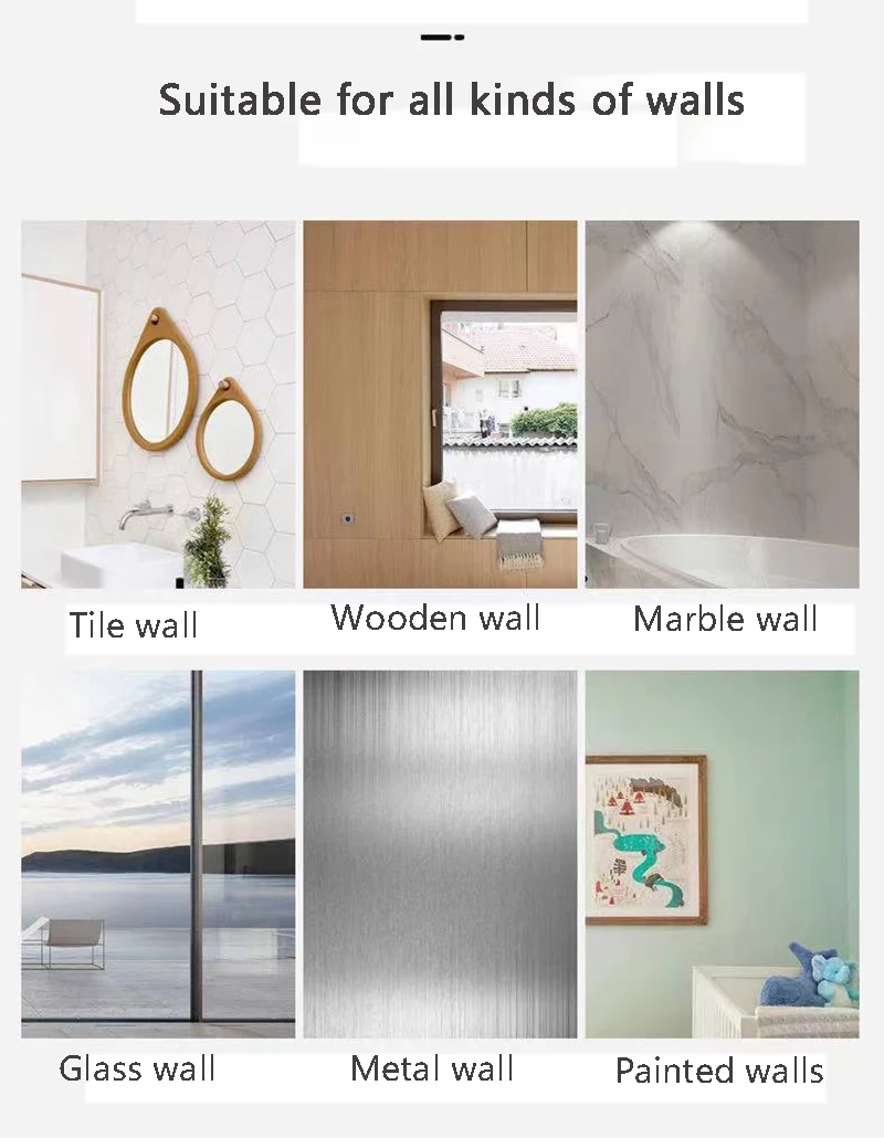 1. Установка свободного сверления: нет необходимости сверлить, легко установить, просто приклейте его на стену или гладкую поверхность для использования