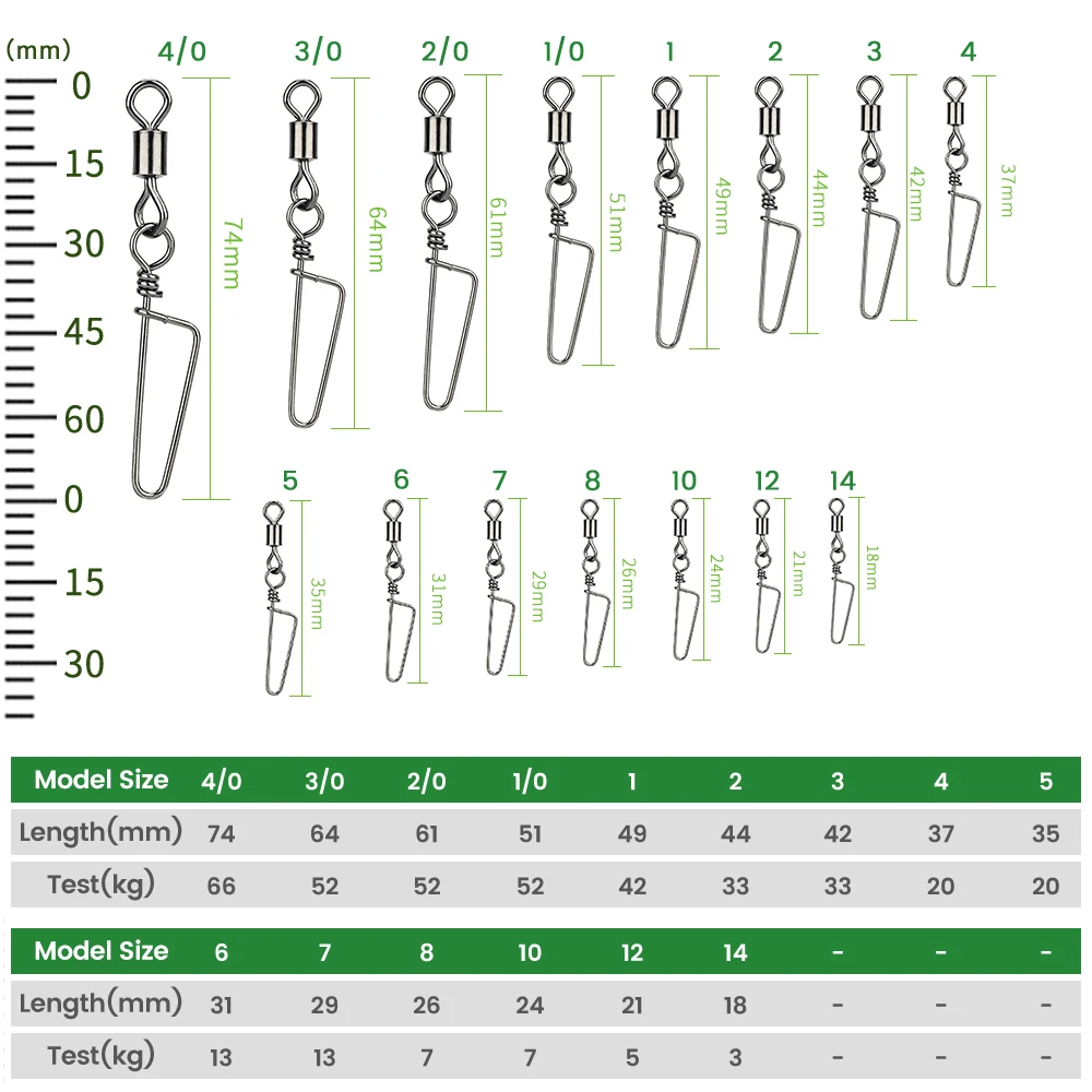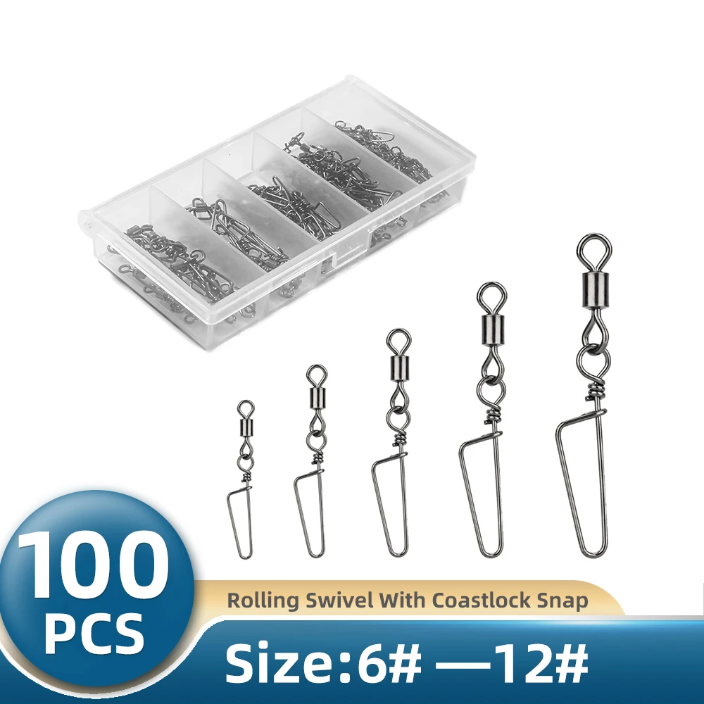 TIANNSII 100 шт. рыболовный Соединитель с застежкой "булавка" роликовые поворотные Нержавеющаясталь на кнопке (6 #-12 # снасть для приманки на рыболовецкий крючок аксессуары
